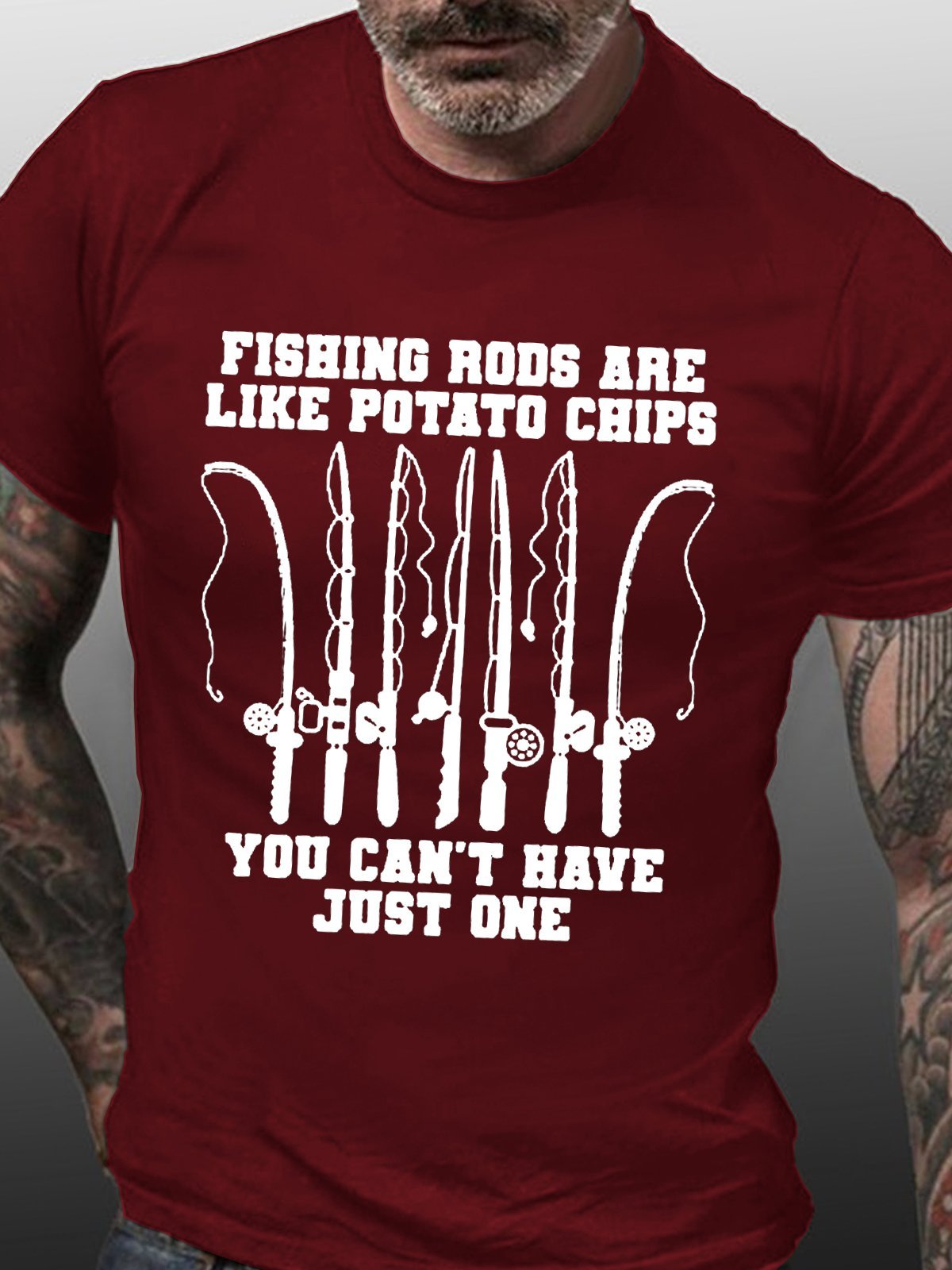 Men's Fishing Rods Are Like Potato Chips You Can't Have Just One Casual Crew Neck T-Shirt