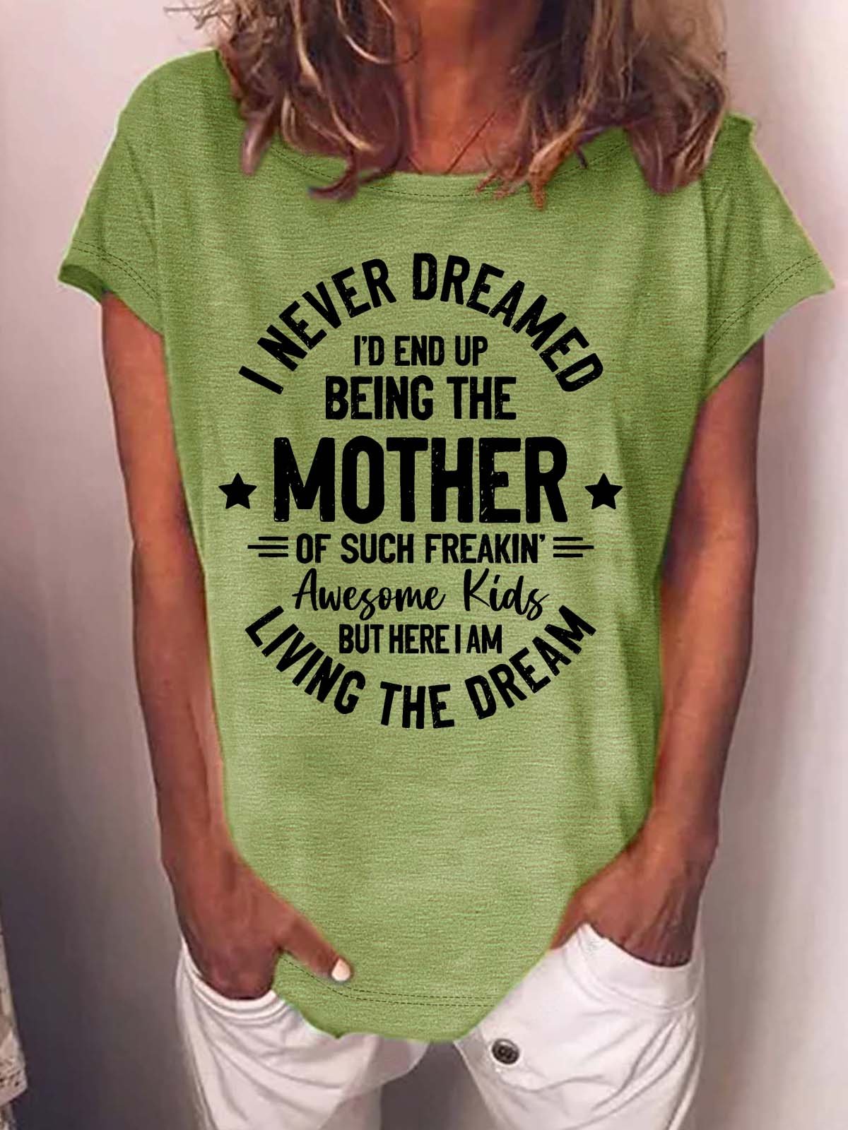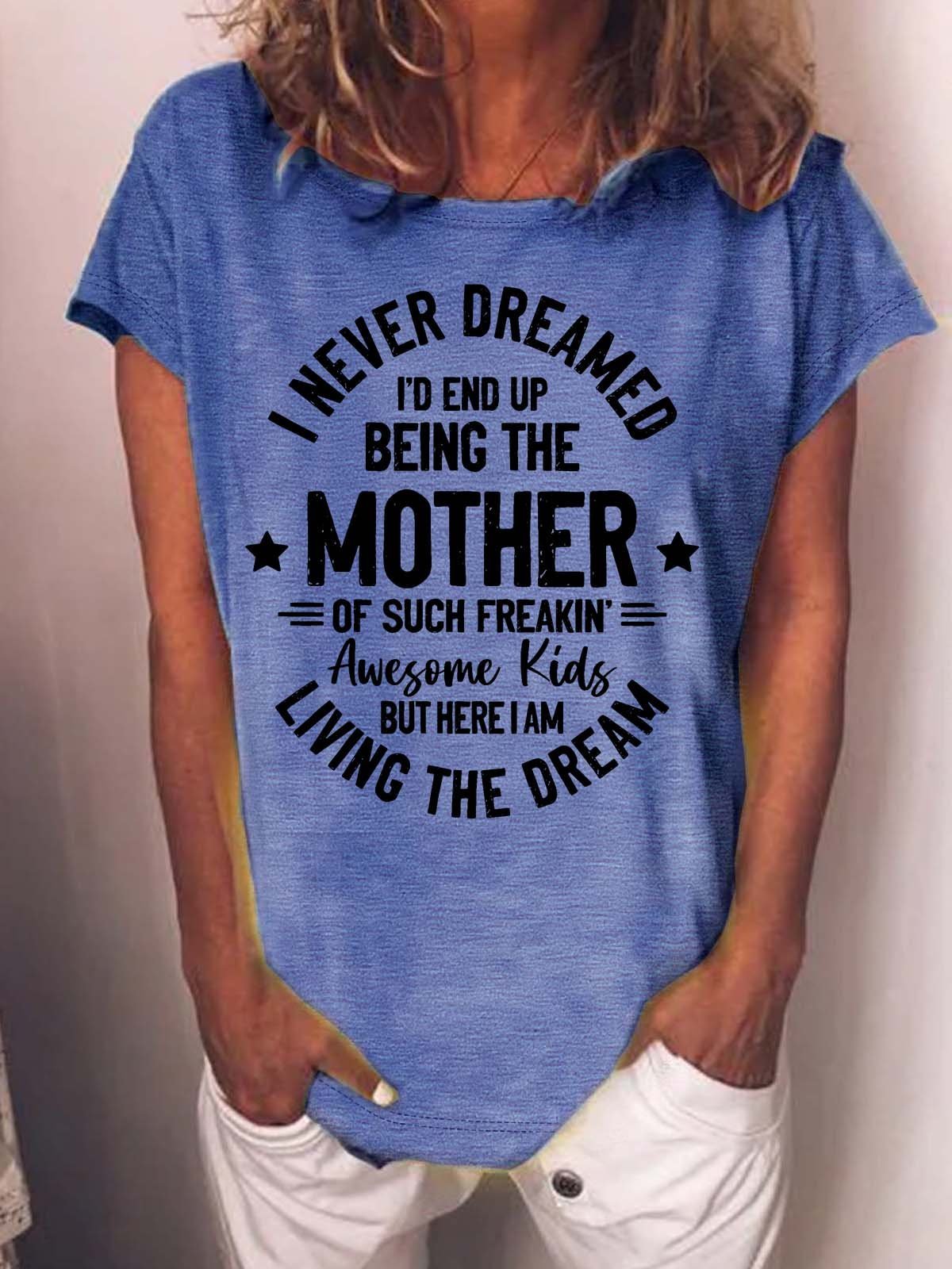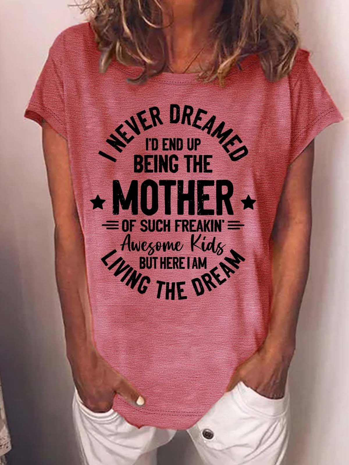 Women’s I Never Dreamed I’d End Up Being The Mother Of Such Freakin Awesome Kids But Here I Am Living The Dream Text Letters Cotton Casual T-Shirt