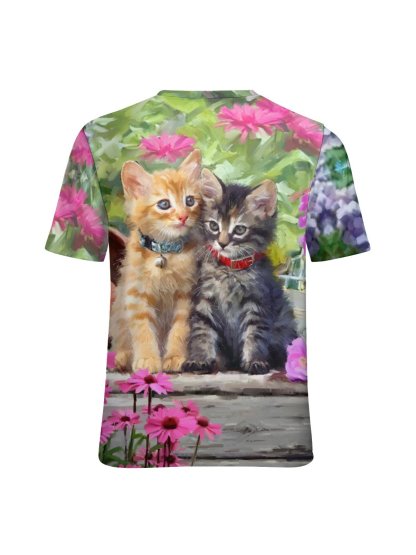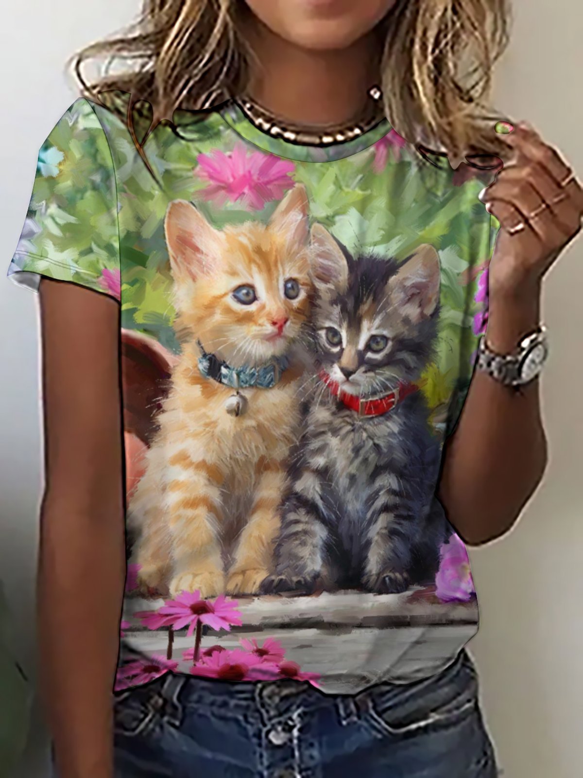 Women's Cute Orange Cat Funny Art Print Loose Casual Floral Crew Neck T-Shirt
