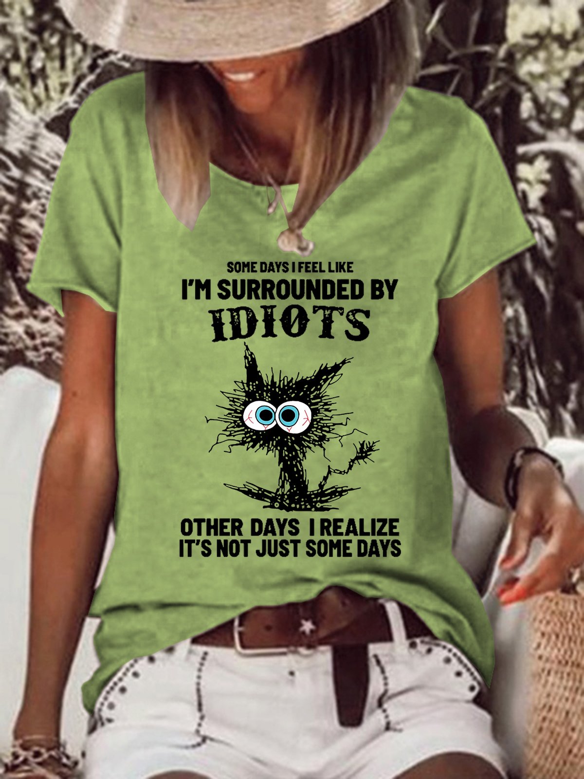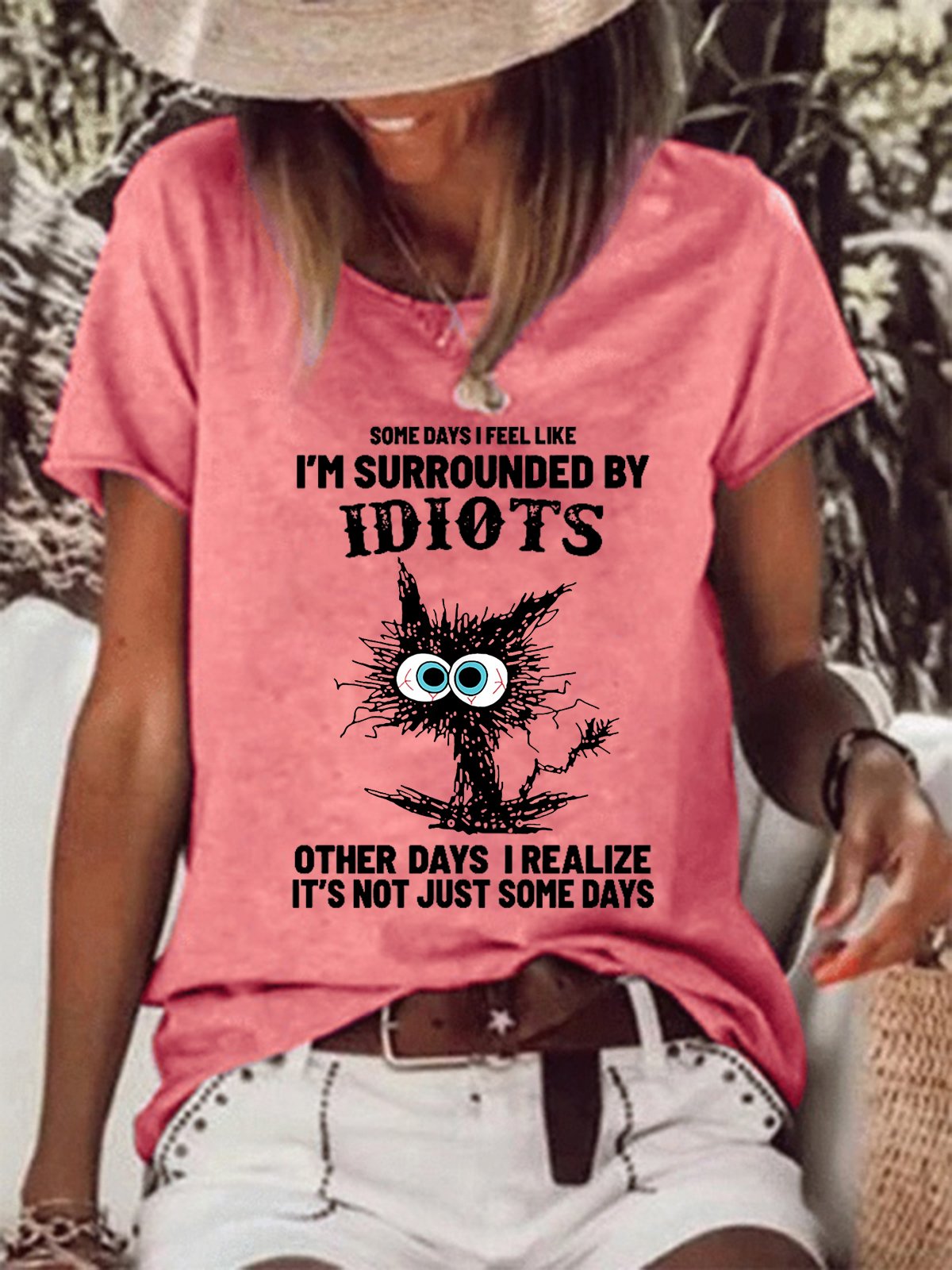 Women Funny Black Cat Someday You Fell Like You’re Surrounded By Idiots Loose T-Shirt