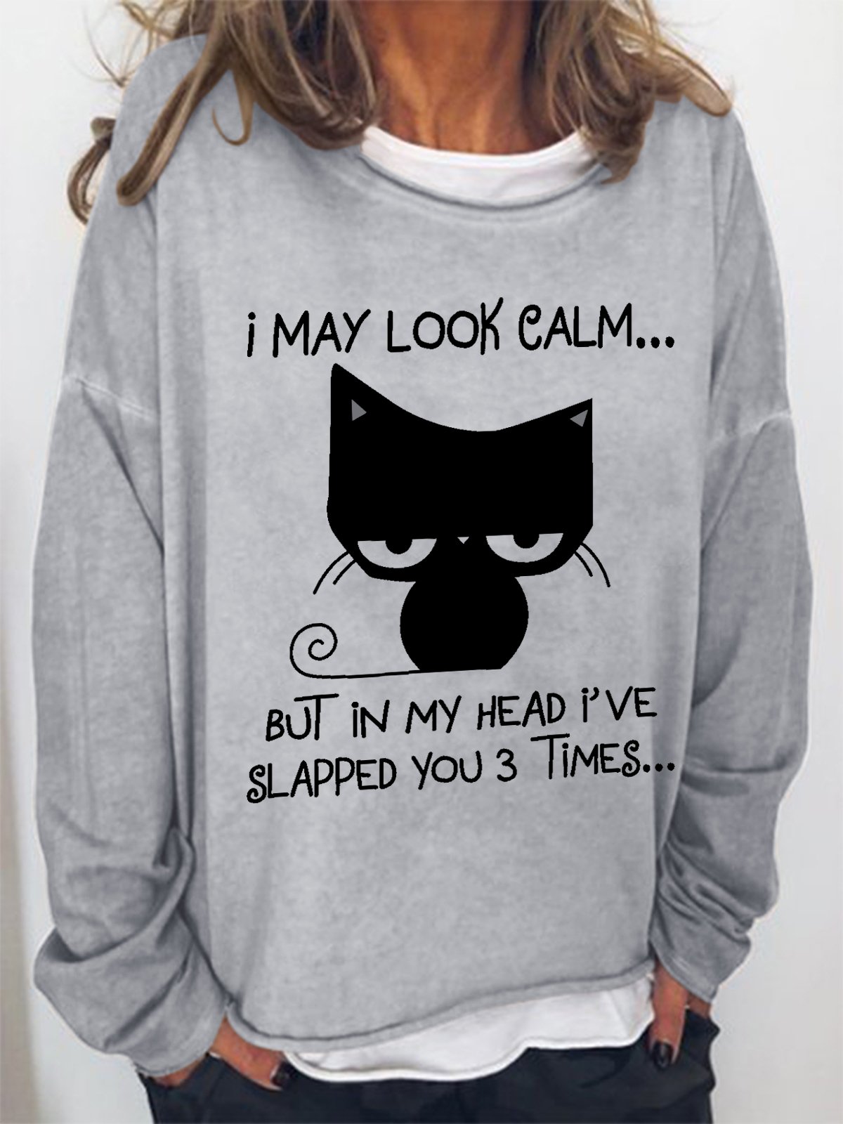 Women's Funny Graphic I May Look Calm But In My Head I've Slapped You 3 Times Simple Sweatshirt