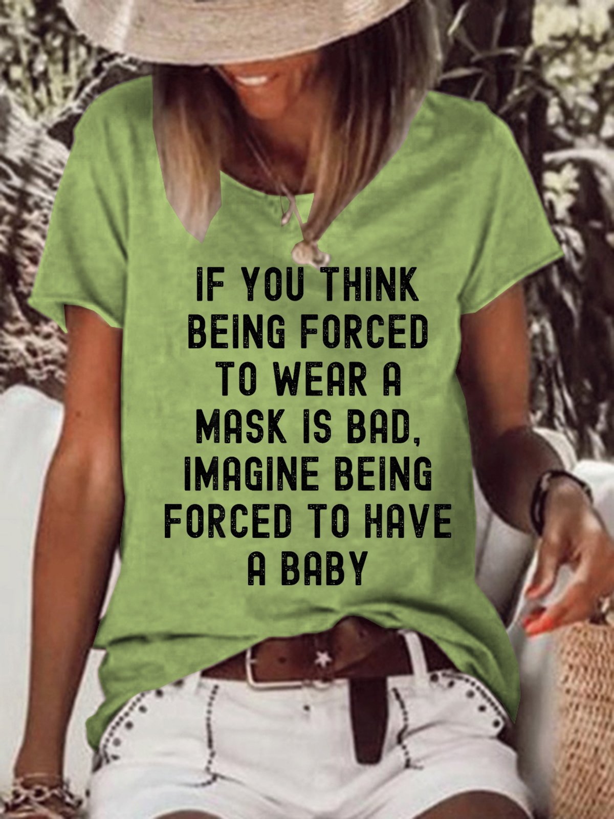 Women If You Think Being Forced To Wear A Mask Is Bad Imagine Being Forced To Have A Baby Crew Neck T-Shirt