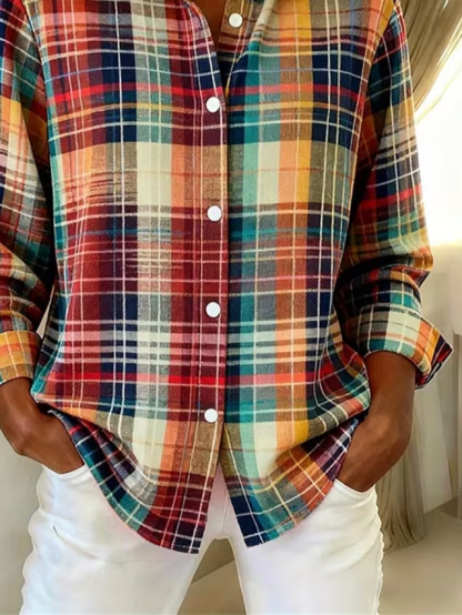 Women's Long Sleeve Shirt Spring/Fall As Picture Plaid Buckle Shirt Collar Regular Sleeve Daily Going Out Casual Top