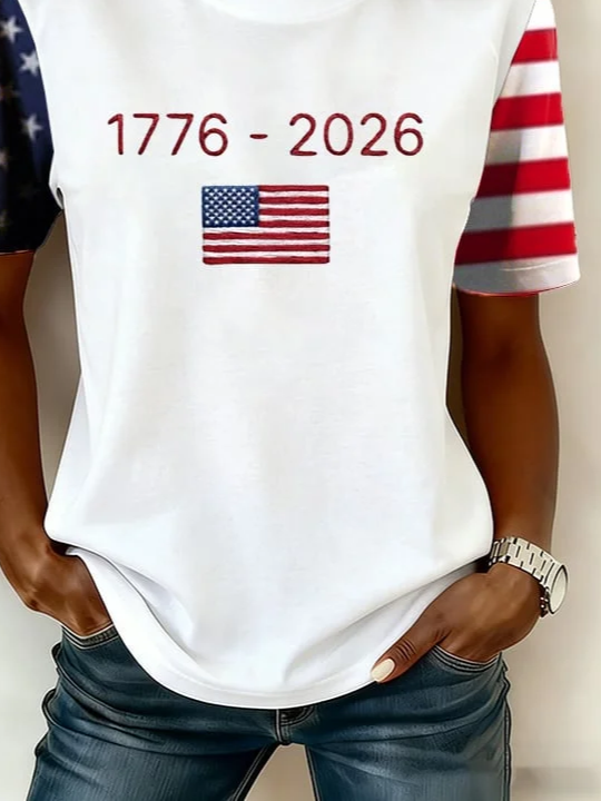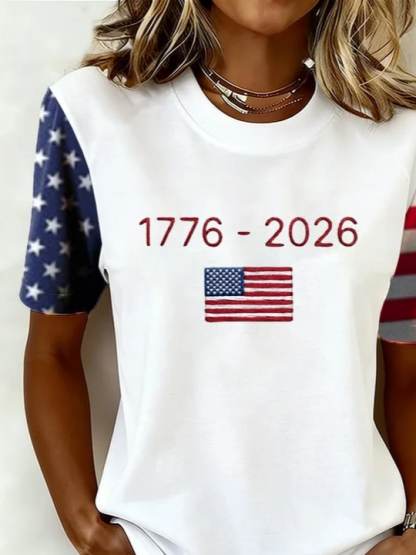 Women's Short Sleeve T-shirt Summer White Independence Day (Flag) Printing Jersey Crew Neck Daily Going Out Casual Top