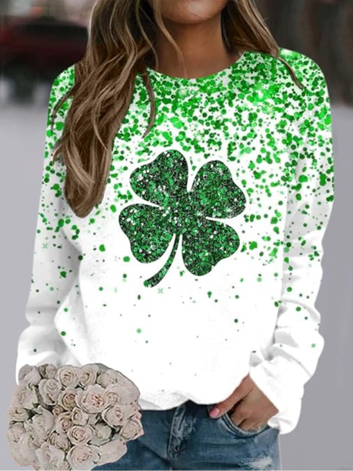 Women's St. Patrick's Day Irish Shirt Green sequin print long-sleeved four-leaf Clover Sweatshirt
