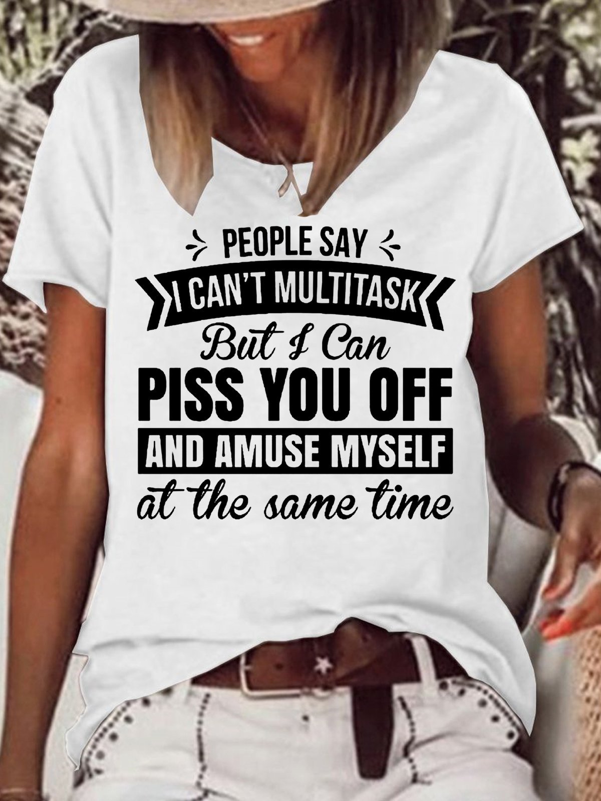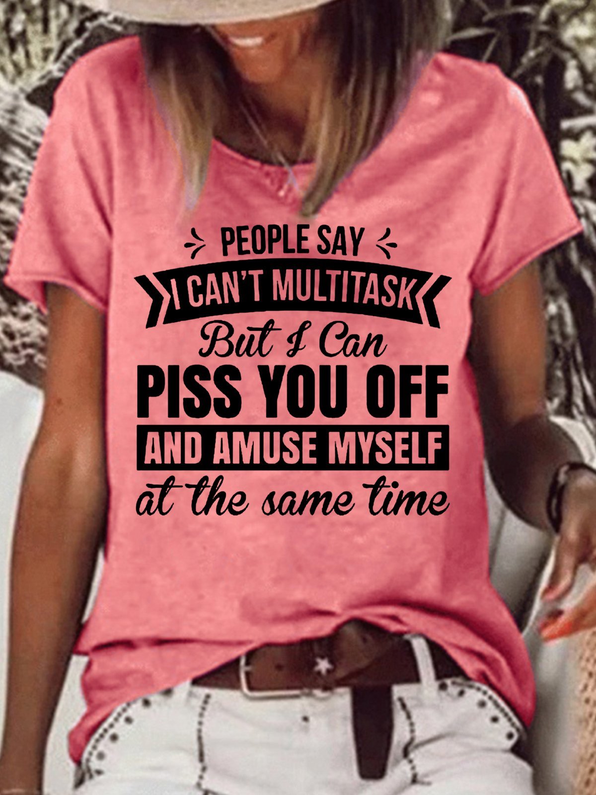 Womens People Say I Can't Multitask Letters Casual T-Shirt