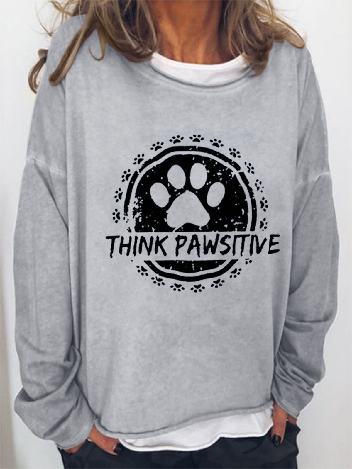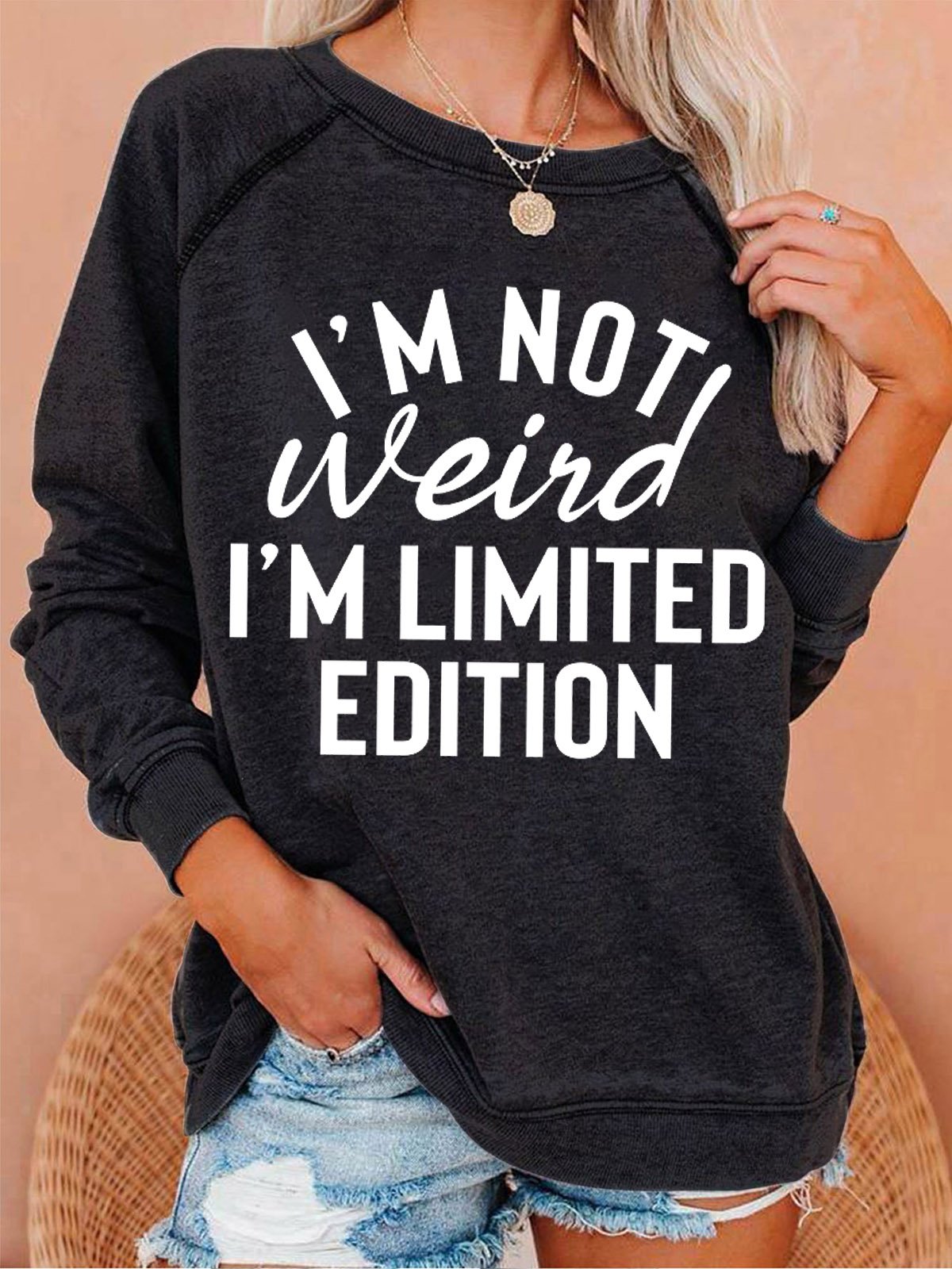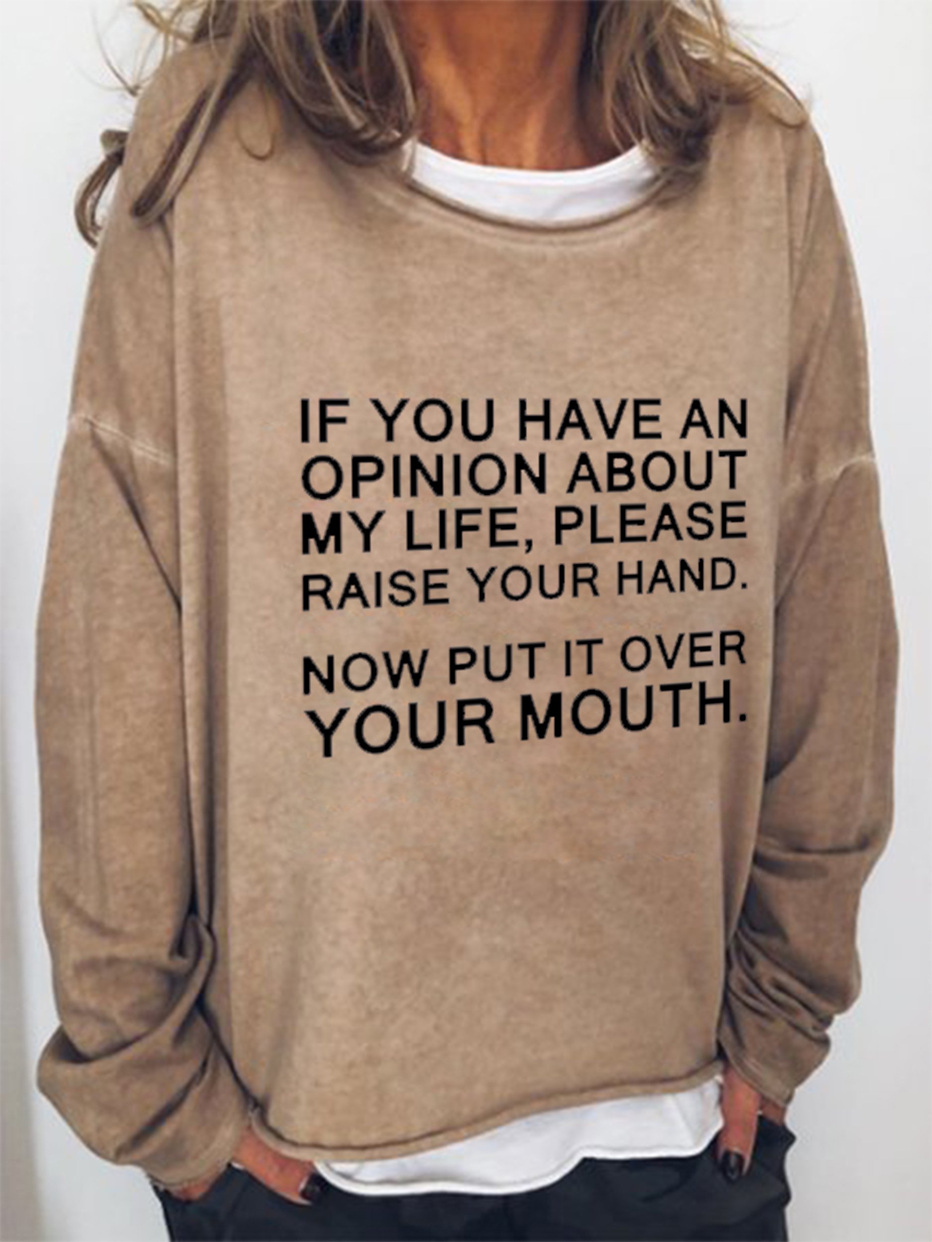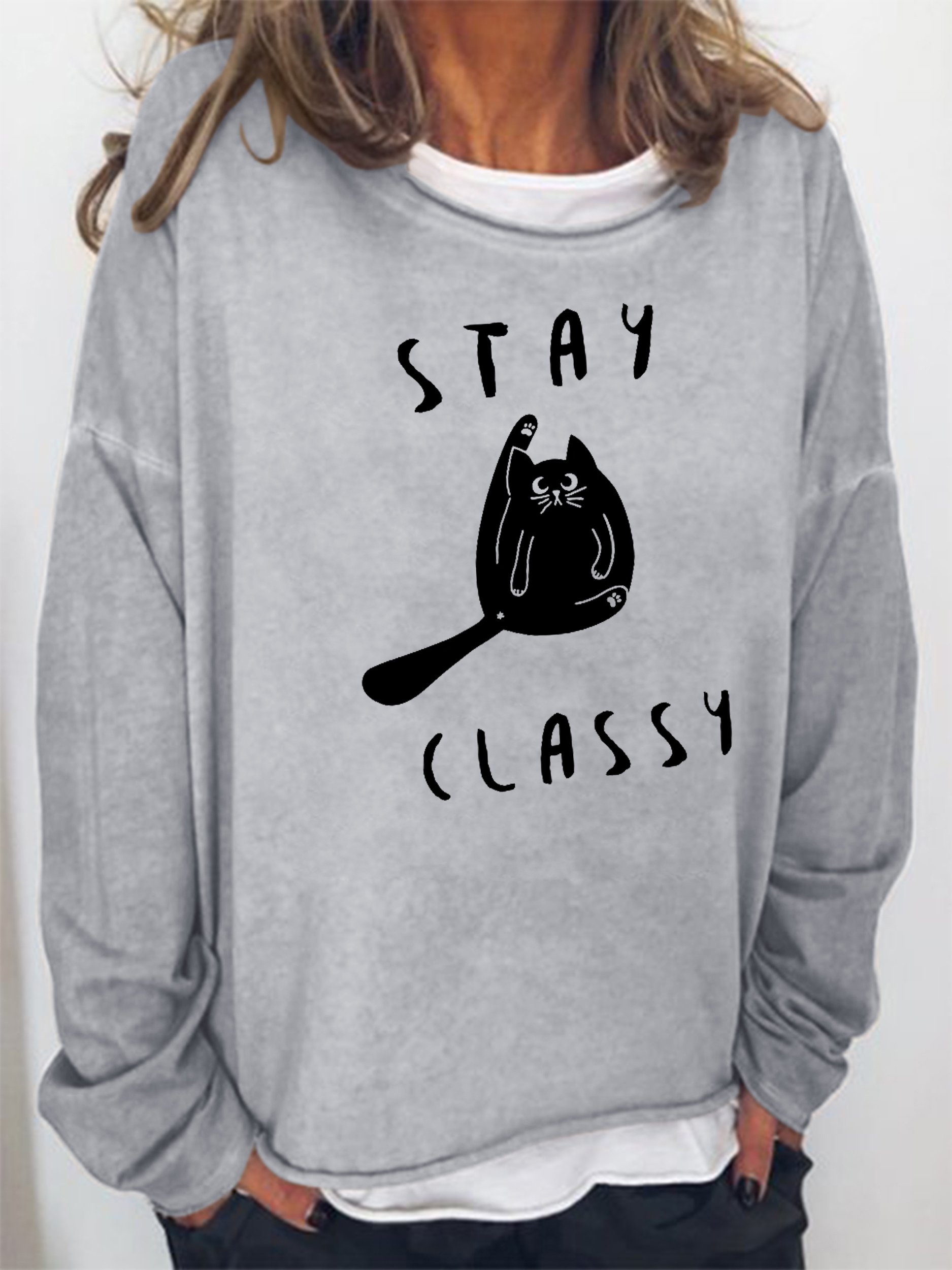 Funny text print round neck long-sleeved Sweatshirts