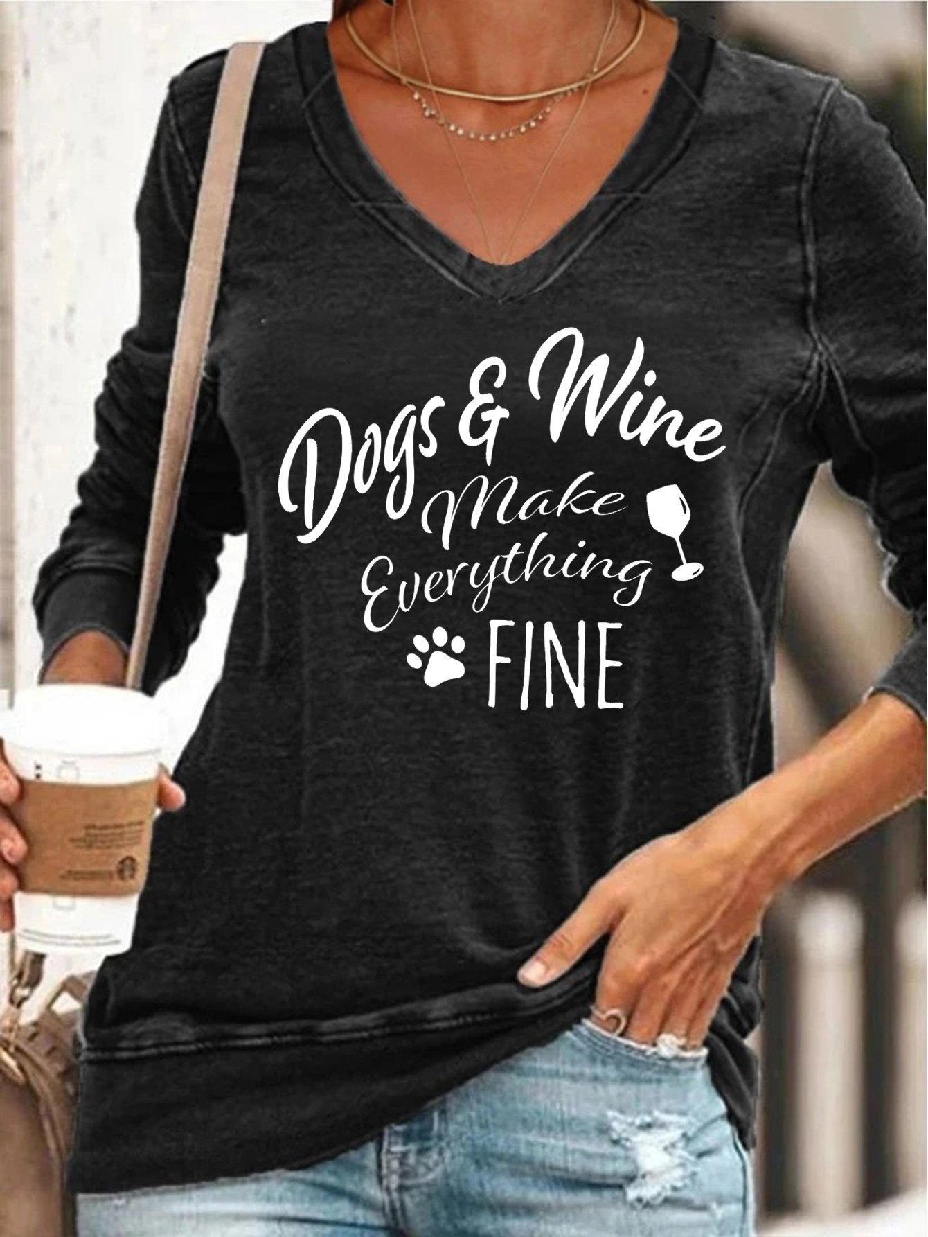 Fun text printed V-neck long-sleeved Sweatshirts