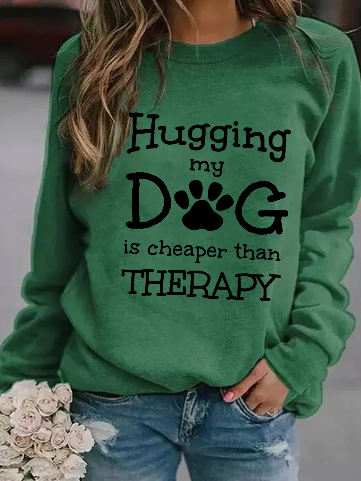 Hugging My Dog Is Cheaper Than Therapy Crew Neck Sweatshirts