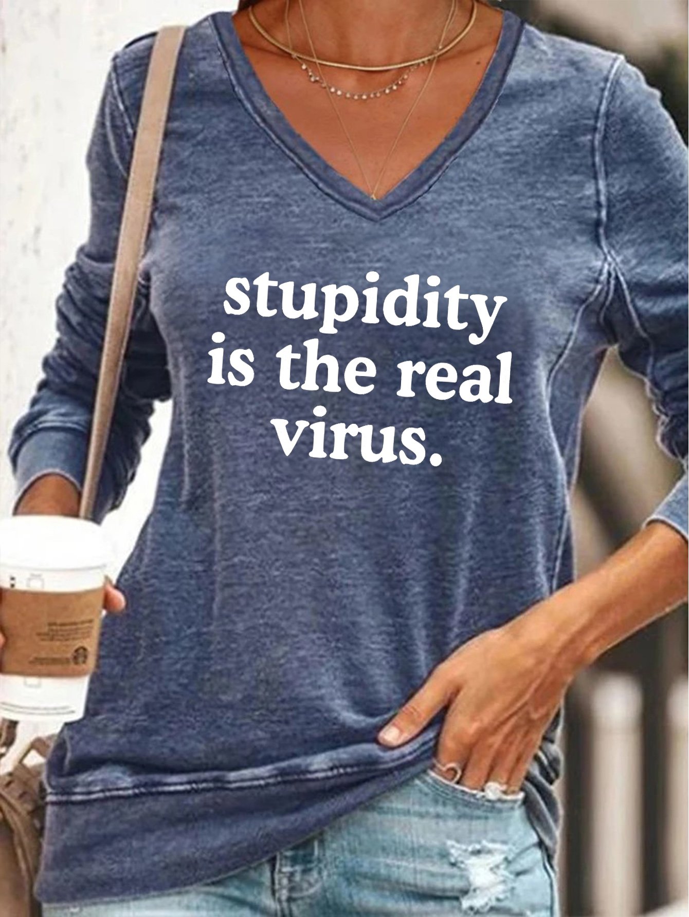Funny satirical text printed V-neck long-sleeved Sweatshirts