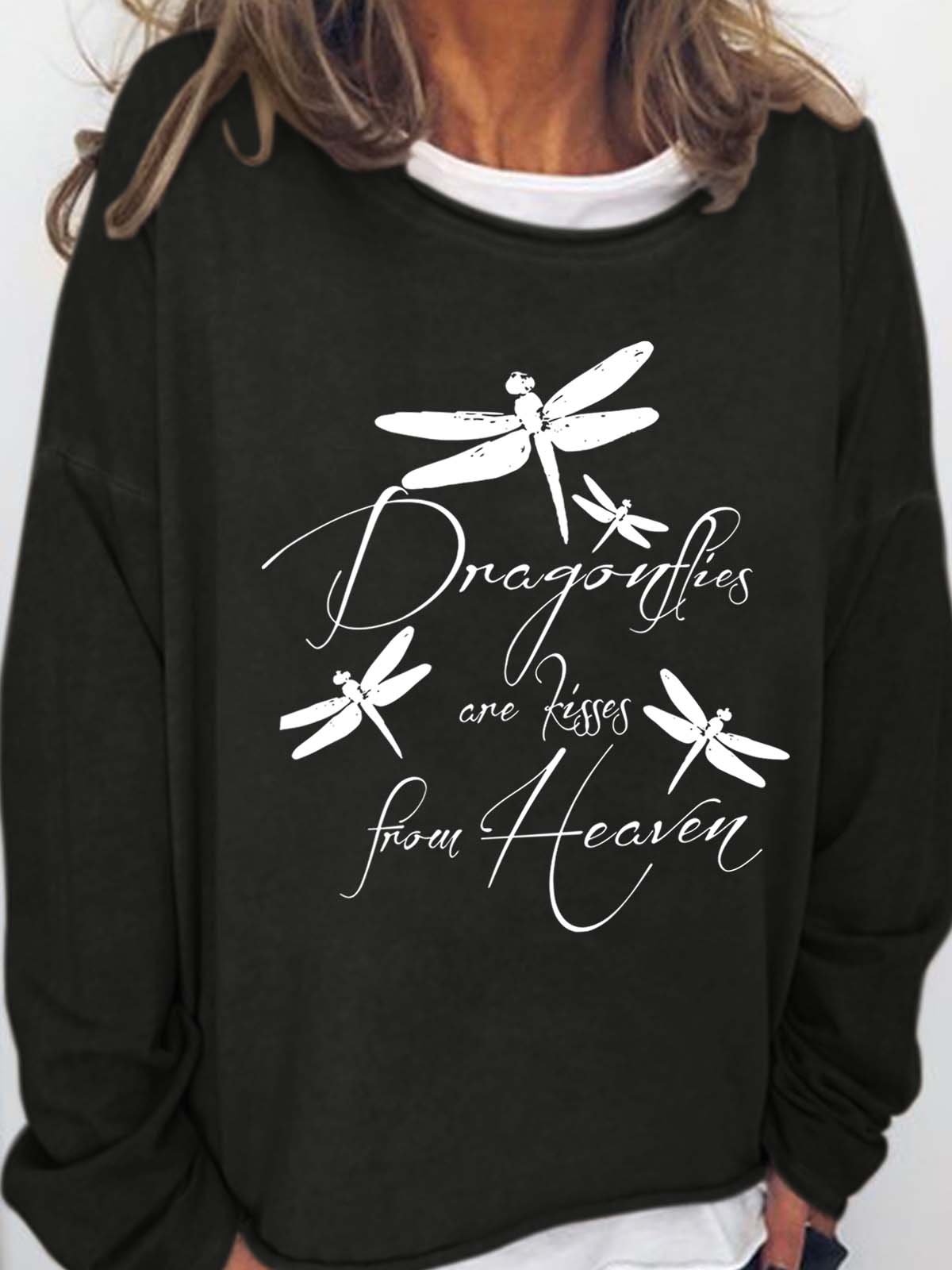 Dragonflies Are Kisses From Heaven Cotton Blends Crew Neck Sweatshirts
