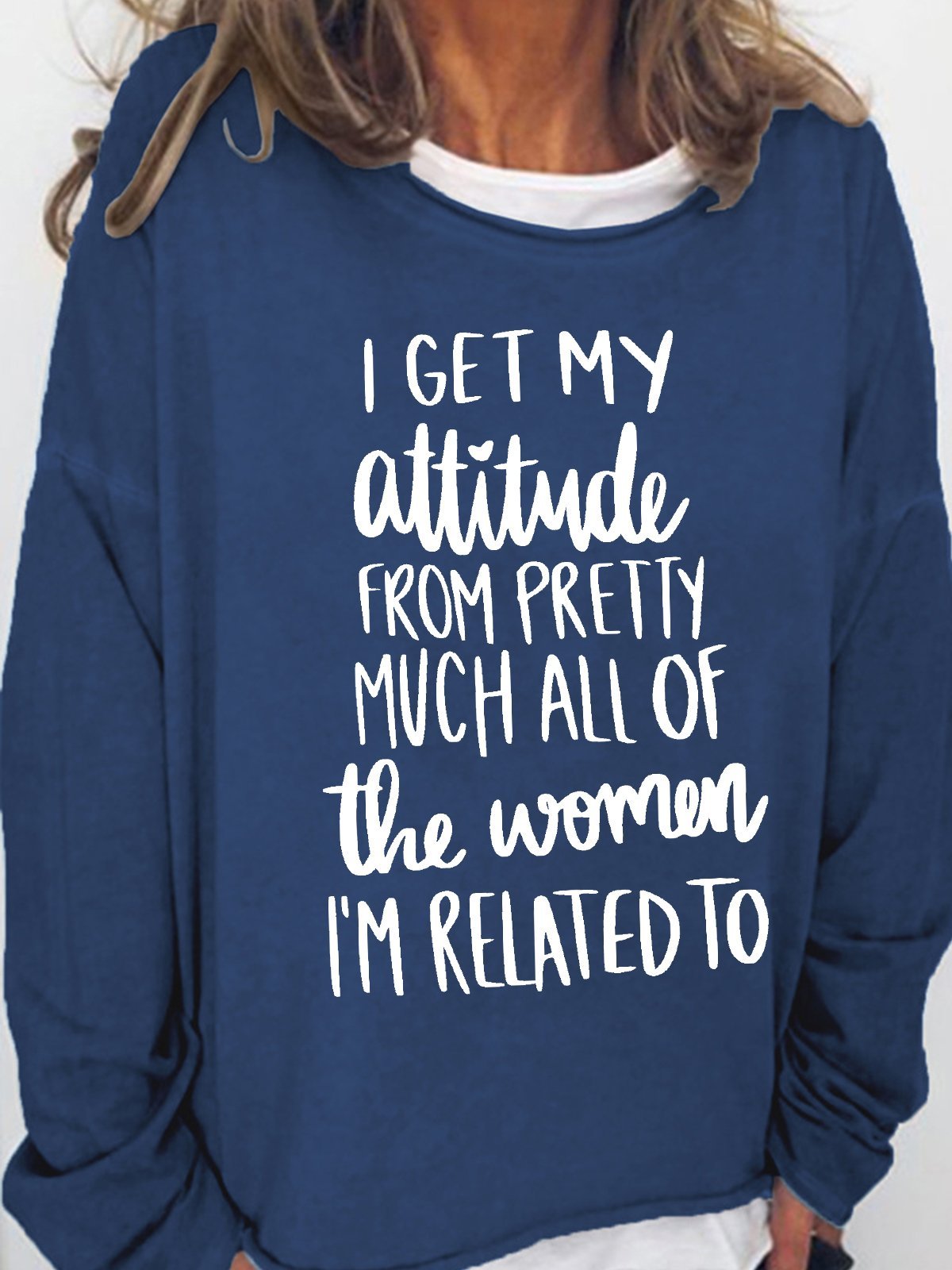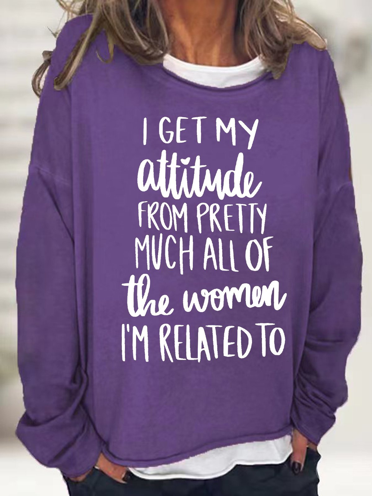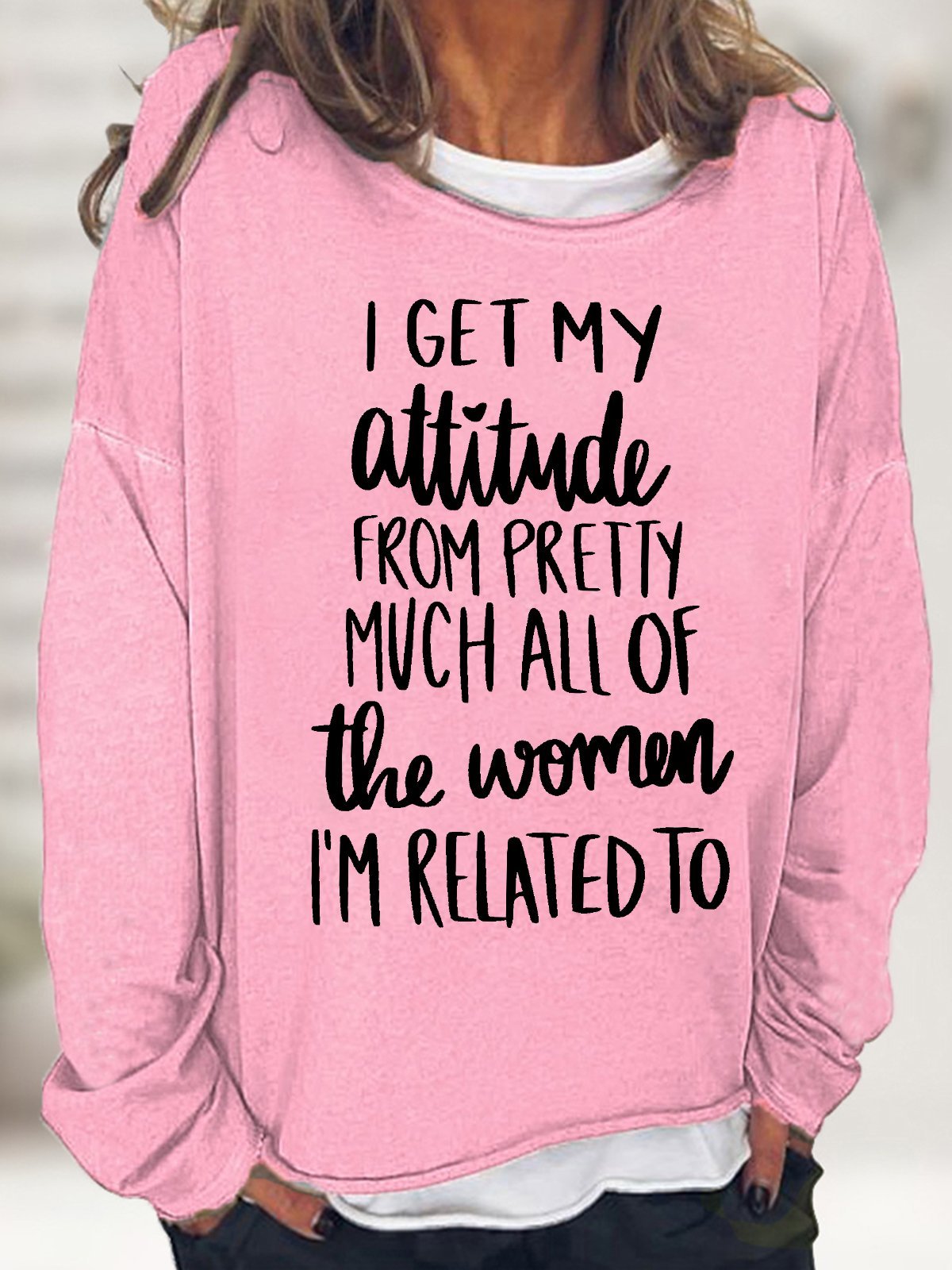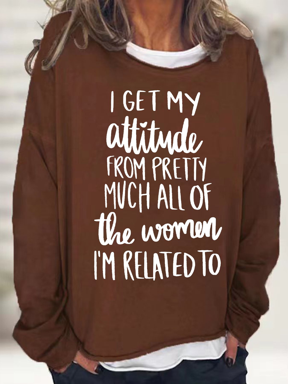 Women's I Get My Attitude From Pretty Much All Of The Women I Am Related To Funny Graphics Printed Crew Neck Text Letters Sweatshirt