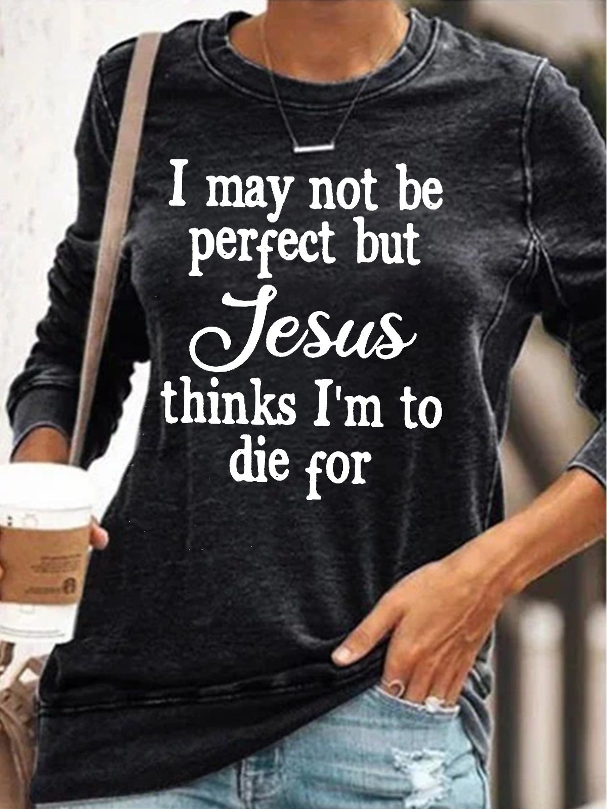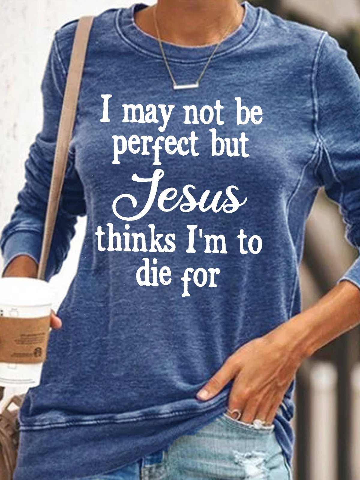 Womens I May Not Be Perfect Casual Jesus Christian Crew Neck Sweatshirt