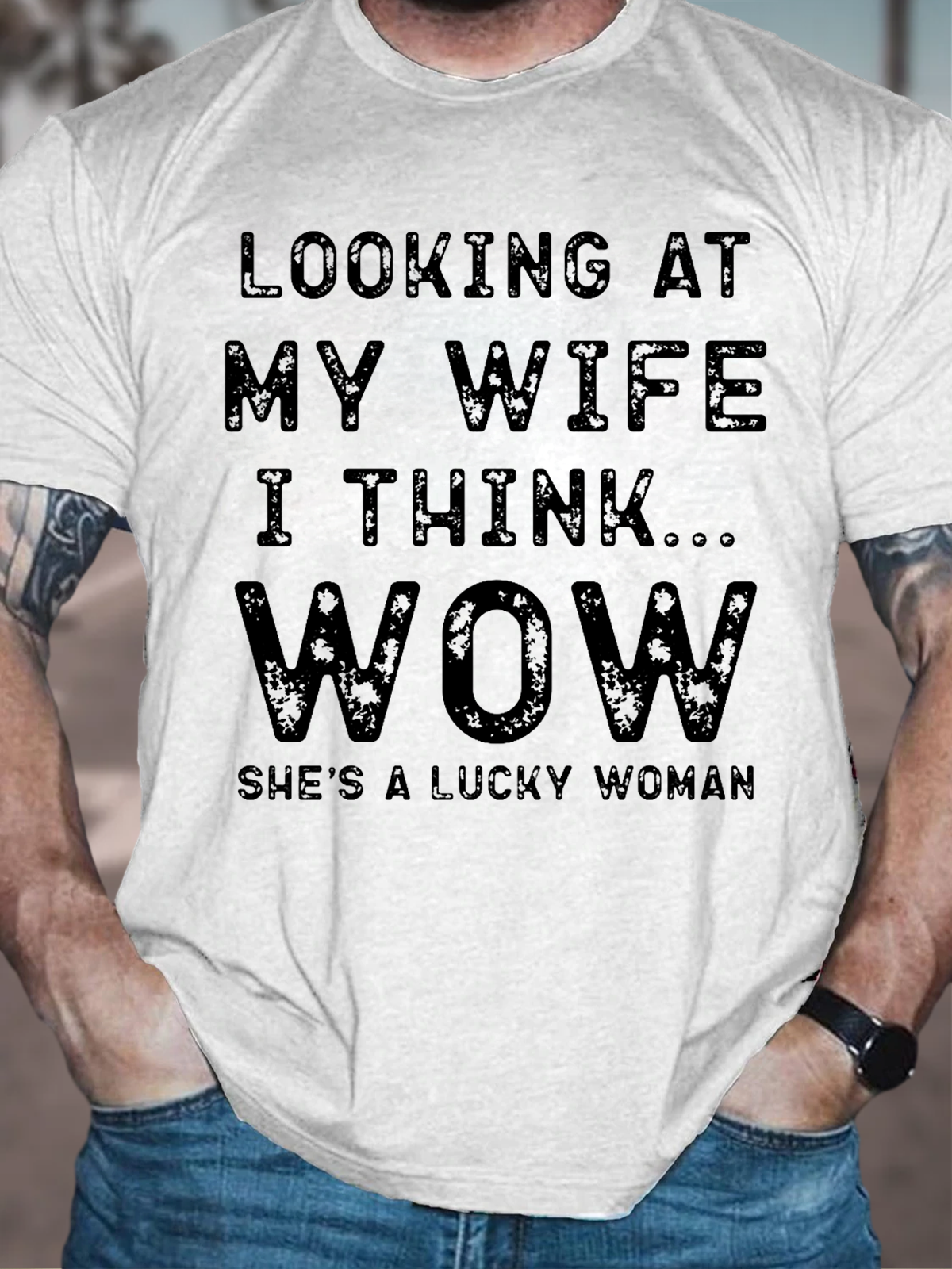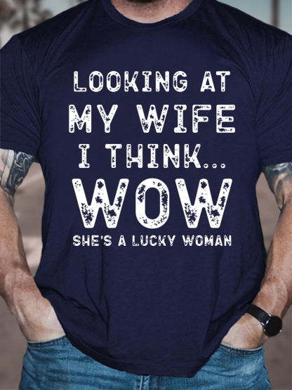 Men's Funny Wife Saying Cotton Text Letters Crew Neck T-Shirt
