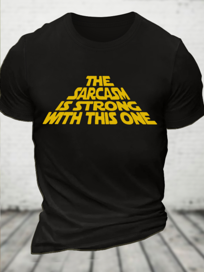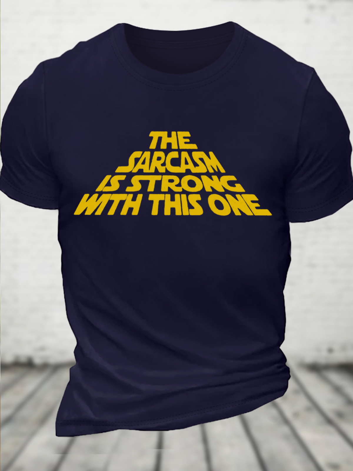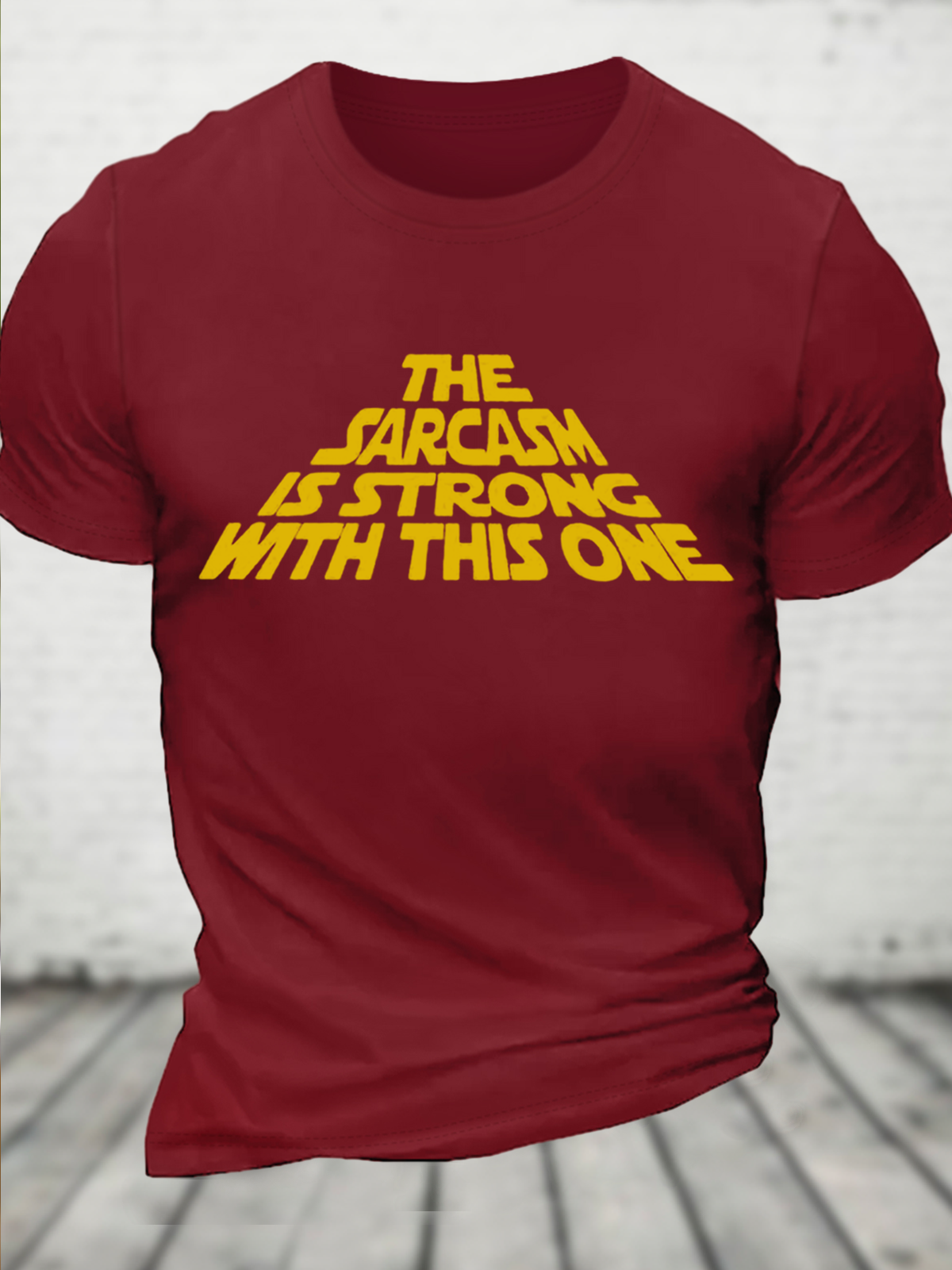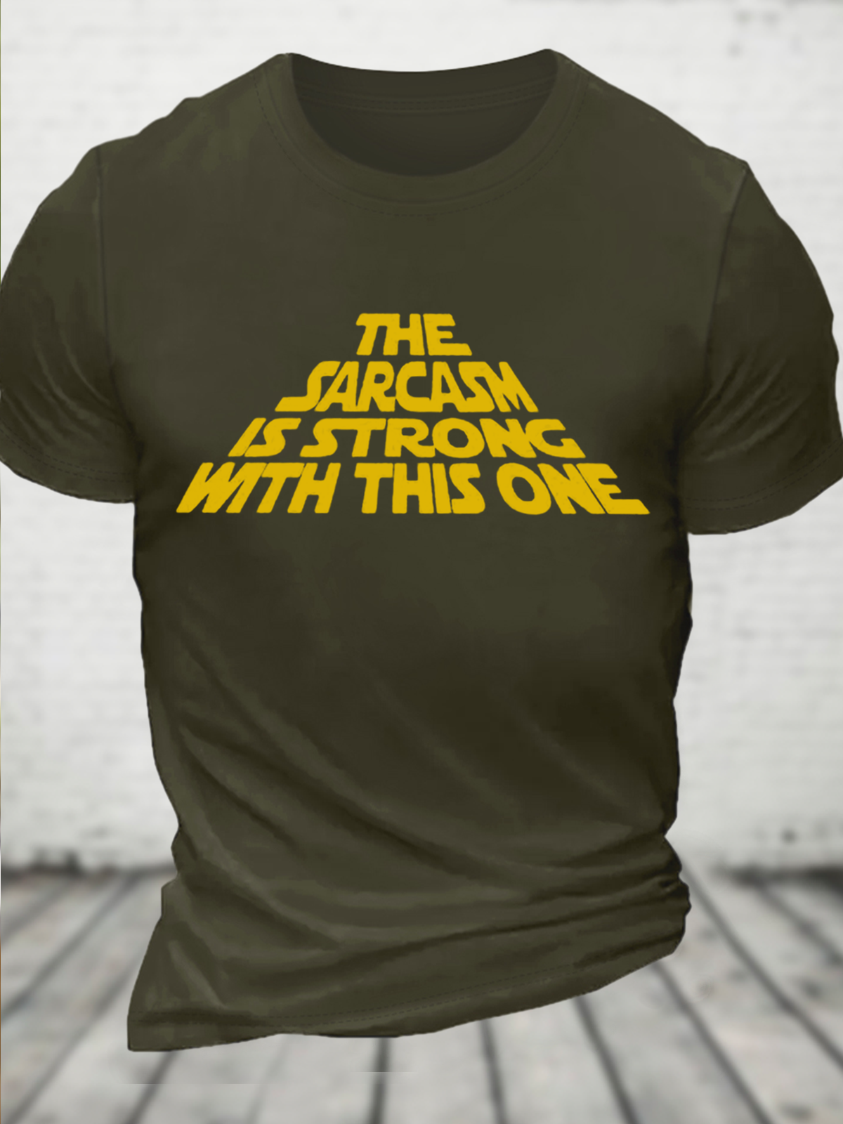 Men's The Sarcasm Is Strong With This One Casual Text Letters Loose Crew Neck Cotton T-Shirt