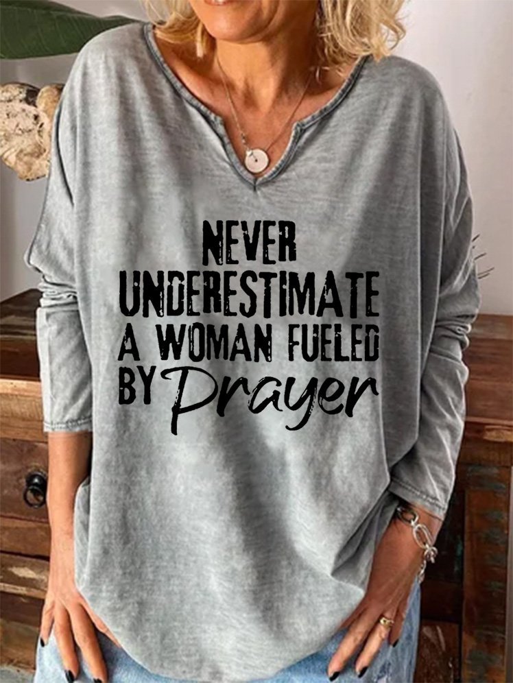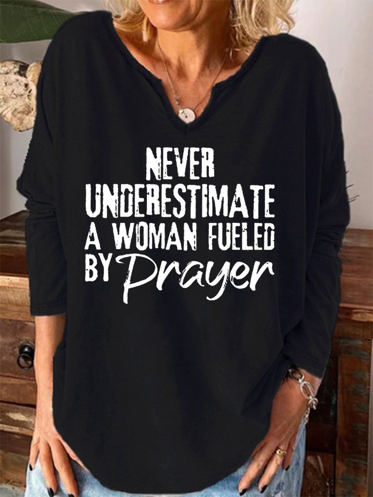 Never Underestimate A Woman Fueled By Prayer Women's V-neck Long Sleeve Top