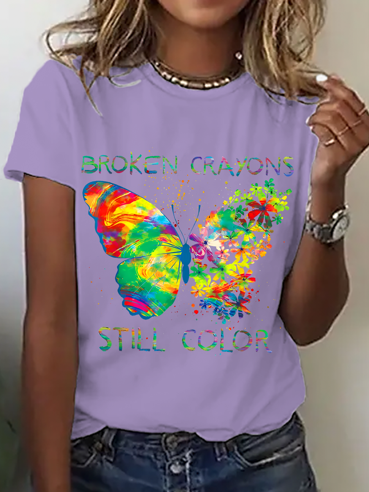 Positive Saying Shirt For Womens, Broken Crayons Still Color T-Shirt, Butterfly Tshirt, Inspirational Tee Cotton T-Shirt