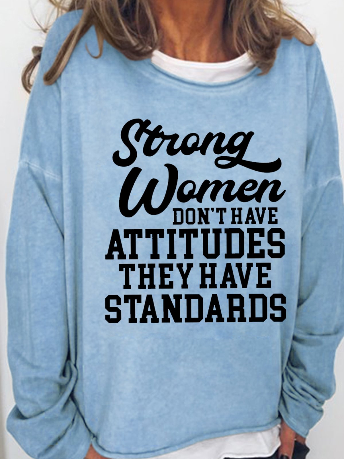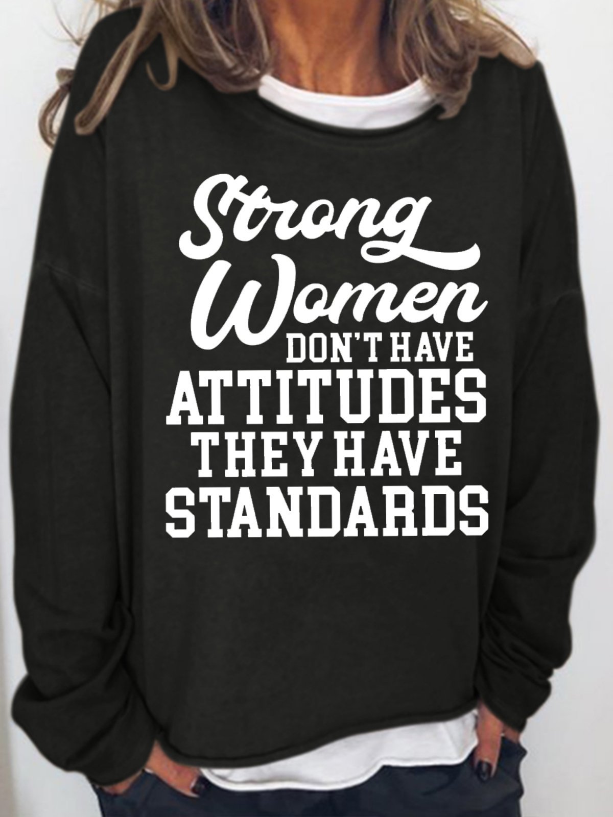 Womens Strong Women Don't Have Attitudes They Have Standards Crew Neck Casual Sweatshirt