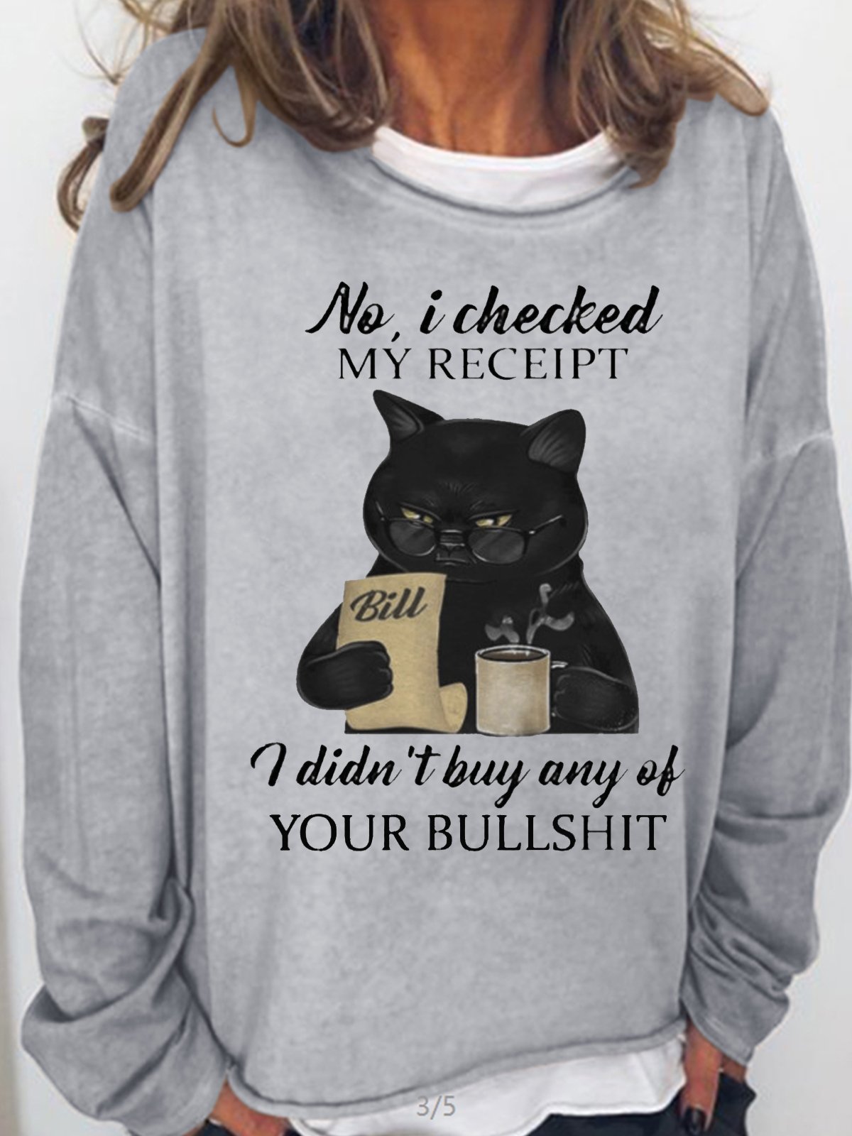 Womens Black CAT NO I CHECKED MY RECEIPT I DIDNT BUY ANY OF YOUR BULLSHIT Crew Neck Sweatshirt