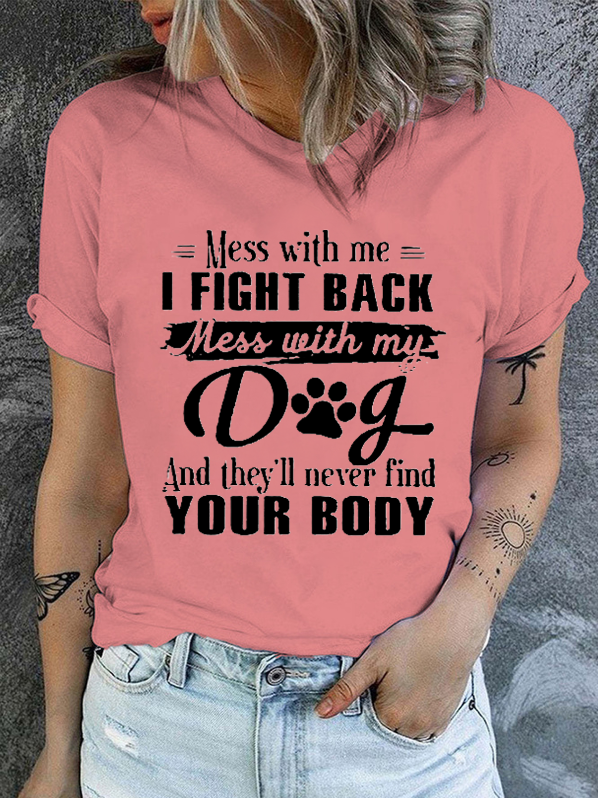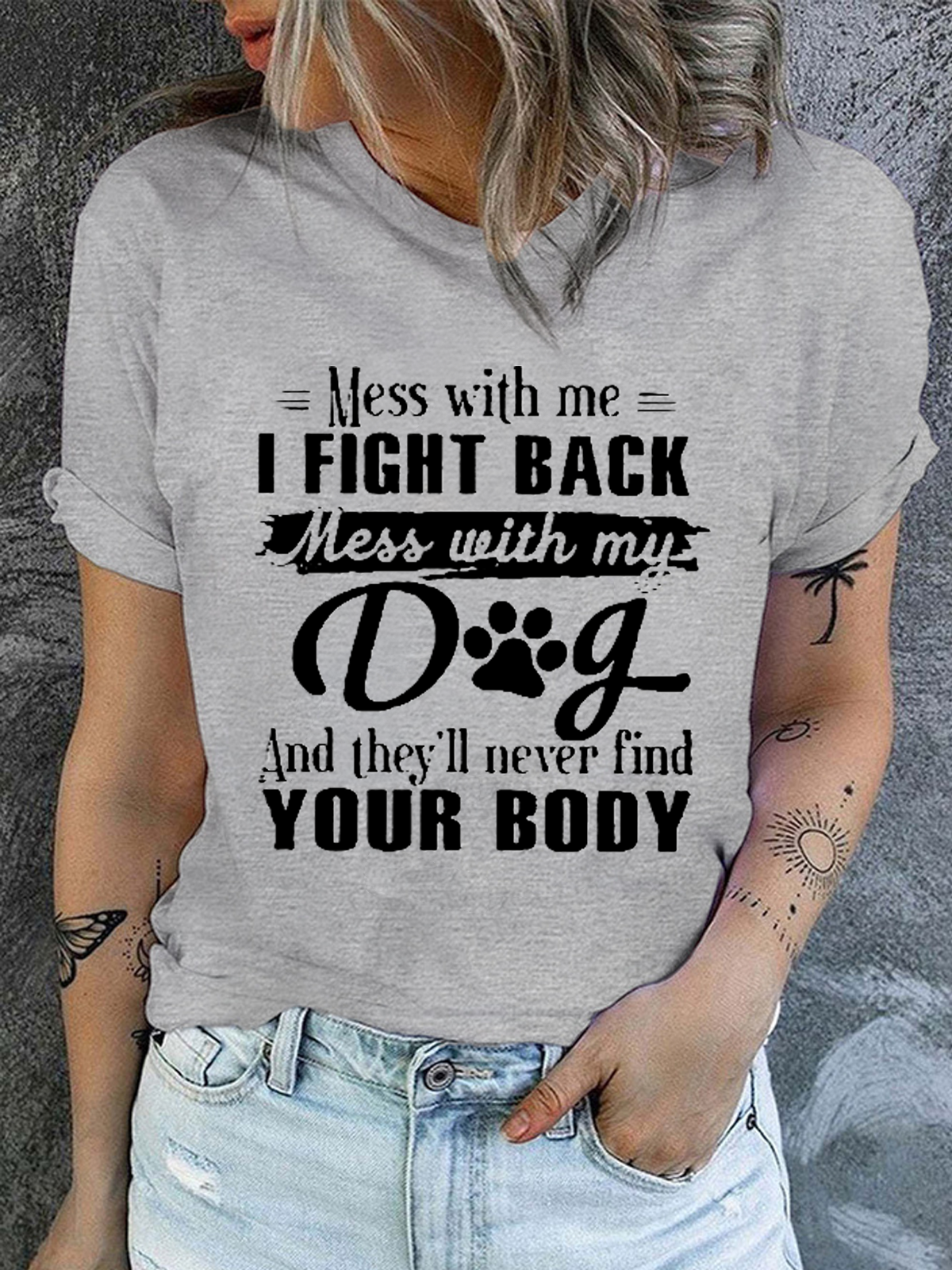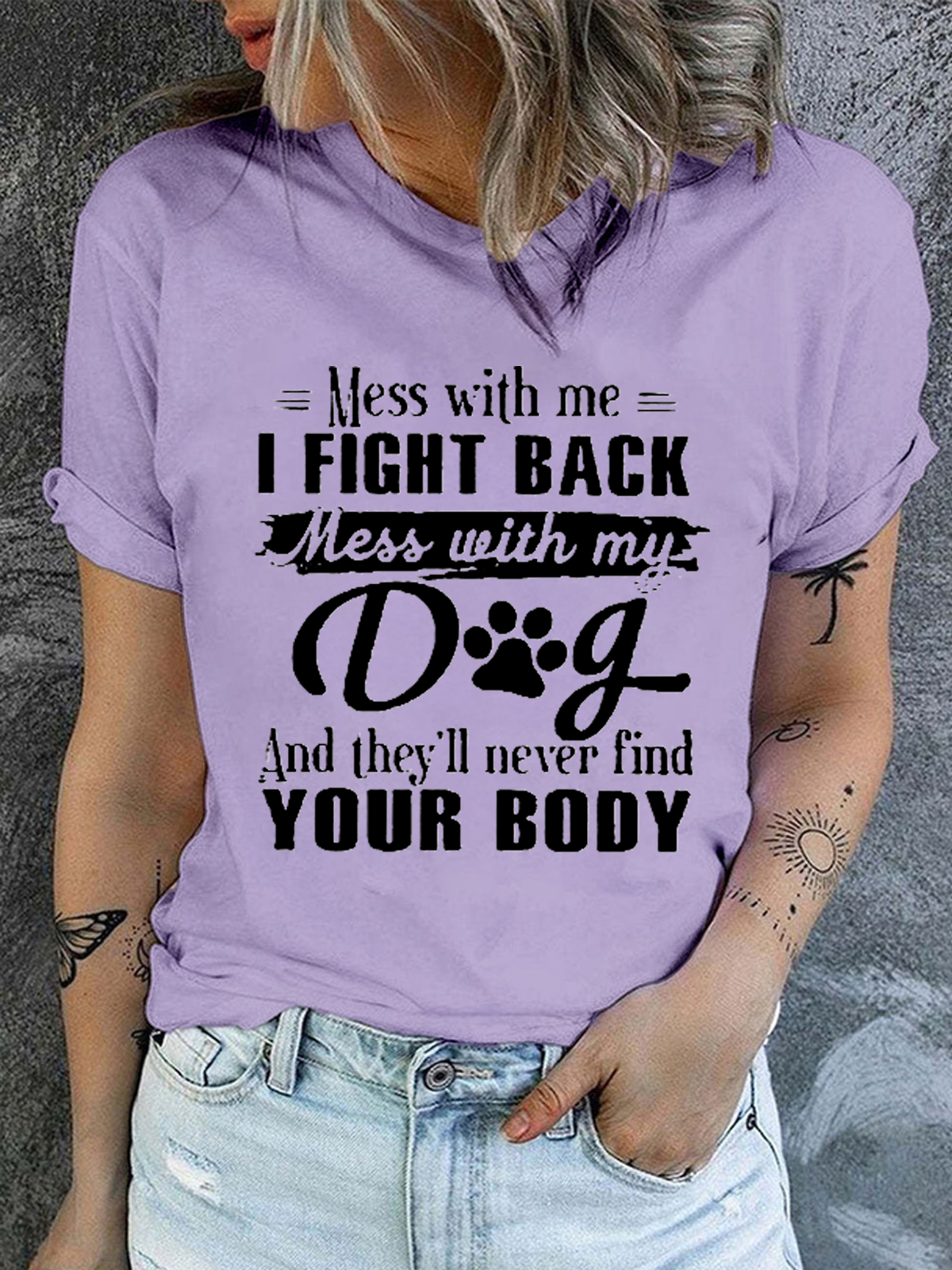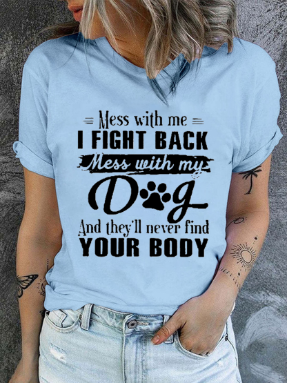 Women's Mess With Me I Fight Back Mess With My Dog Print Cotton Casual Text Letters T-Shirt