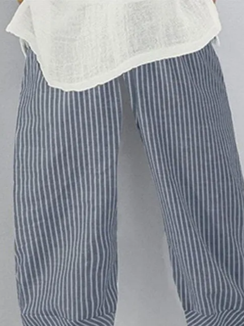 Women's H-Line Straight Pants Daily Going Out Pants Blue Casual Printing Striped Spring/Fall Pants