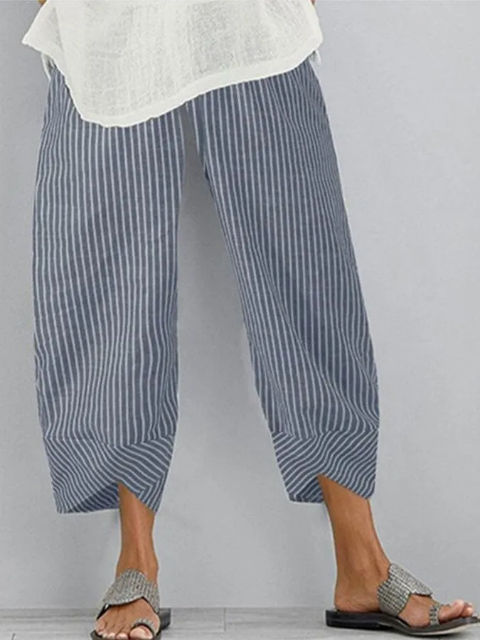 Women's H-Line Baggy Pants Summer Daily Going Out Pants Blue Casual Printing Stripe Spring/Fall Pants