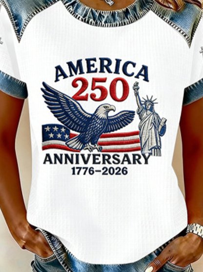 250th anniversary Crew Neck Independence Day Color Block Waffle Casual Regular Fit T-Shirt
