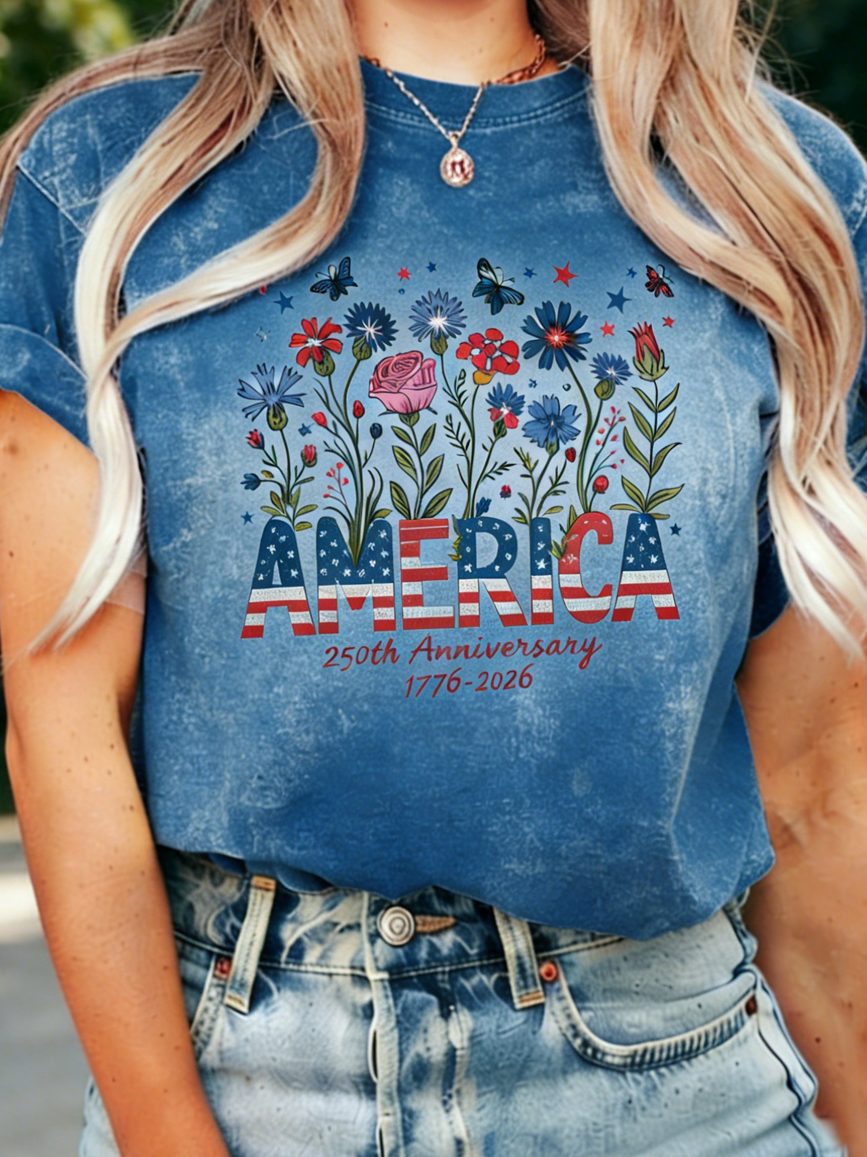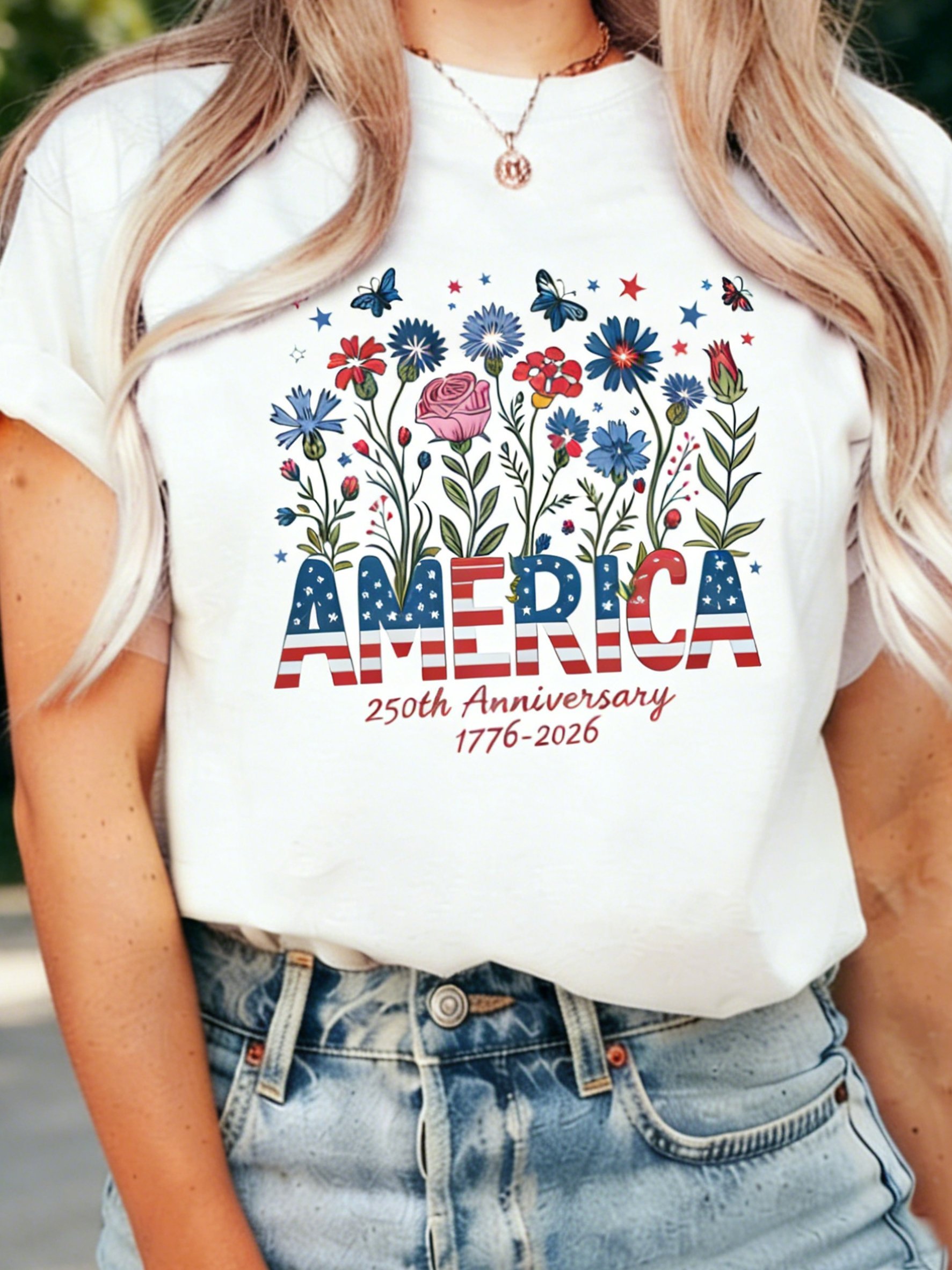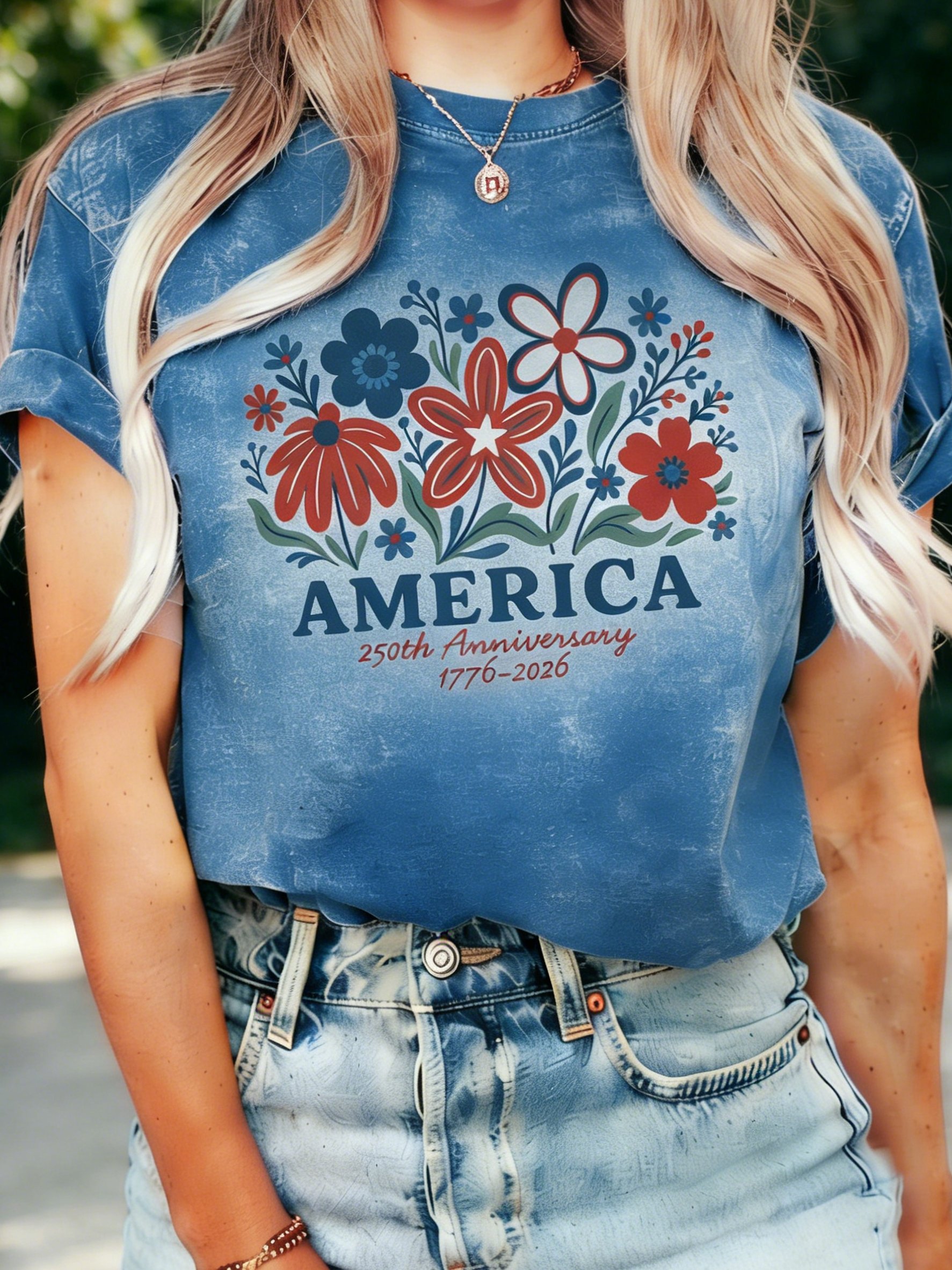 250th anniversary Independence Day Vintage Floral Printed Casual T-Shirt