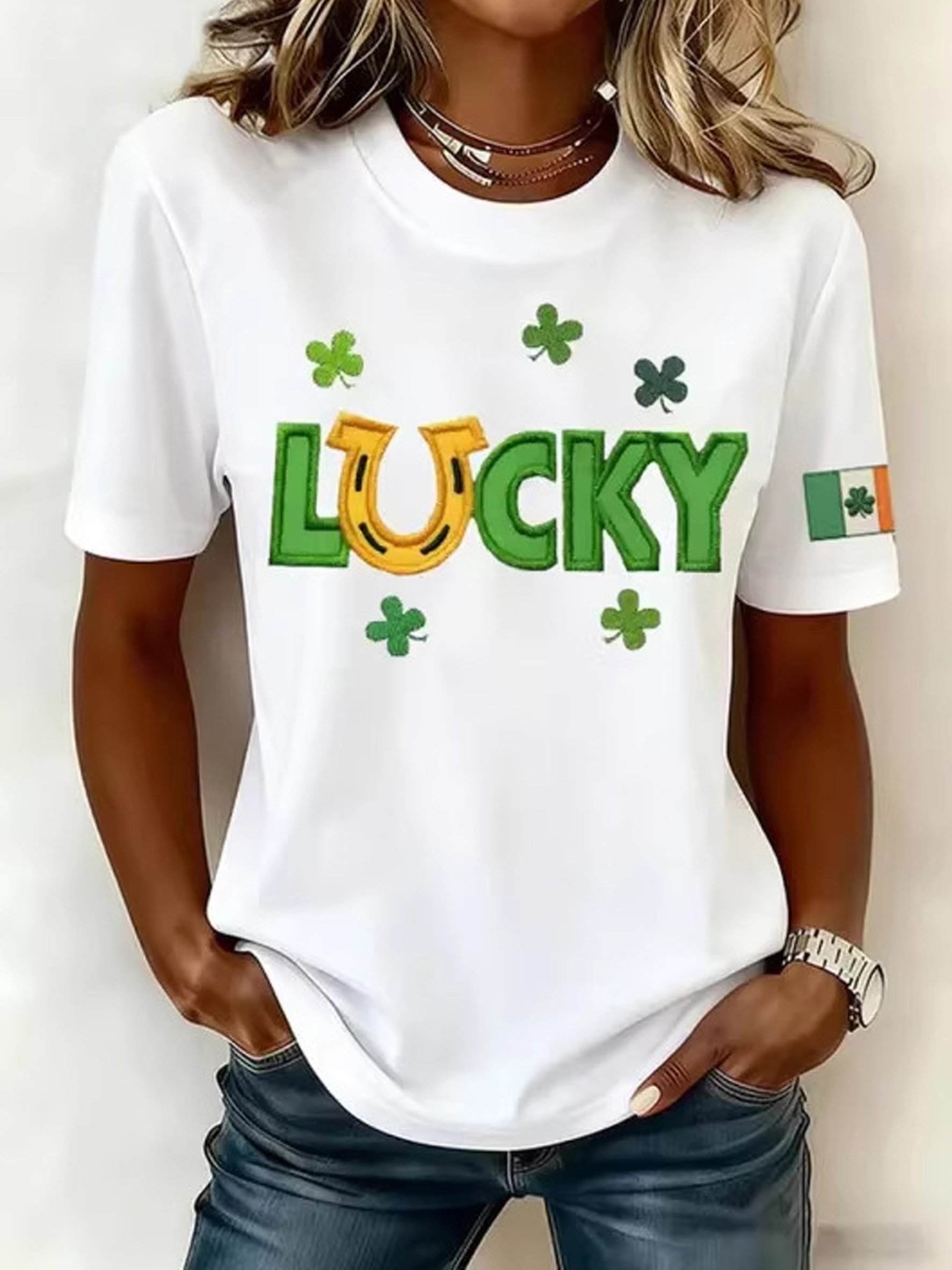Carnival Theme 3D Print Letter Print Crew Neck Short Sleeve Casual T-Shirt