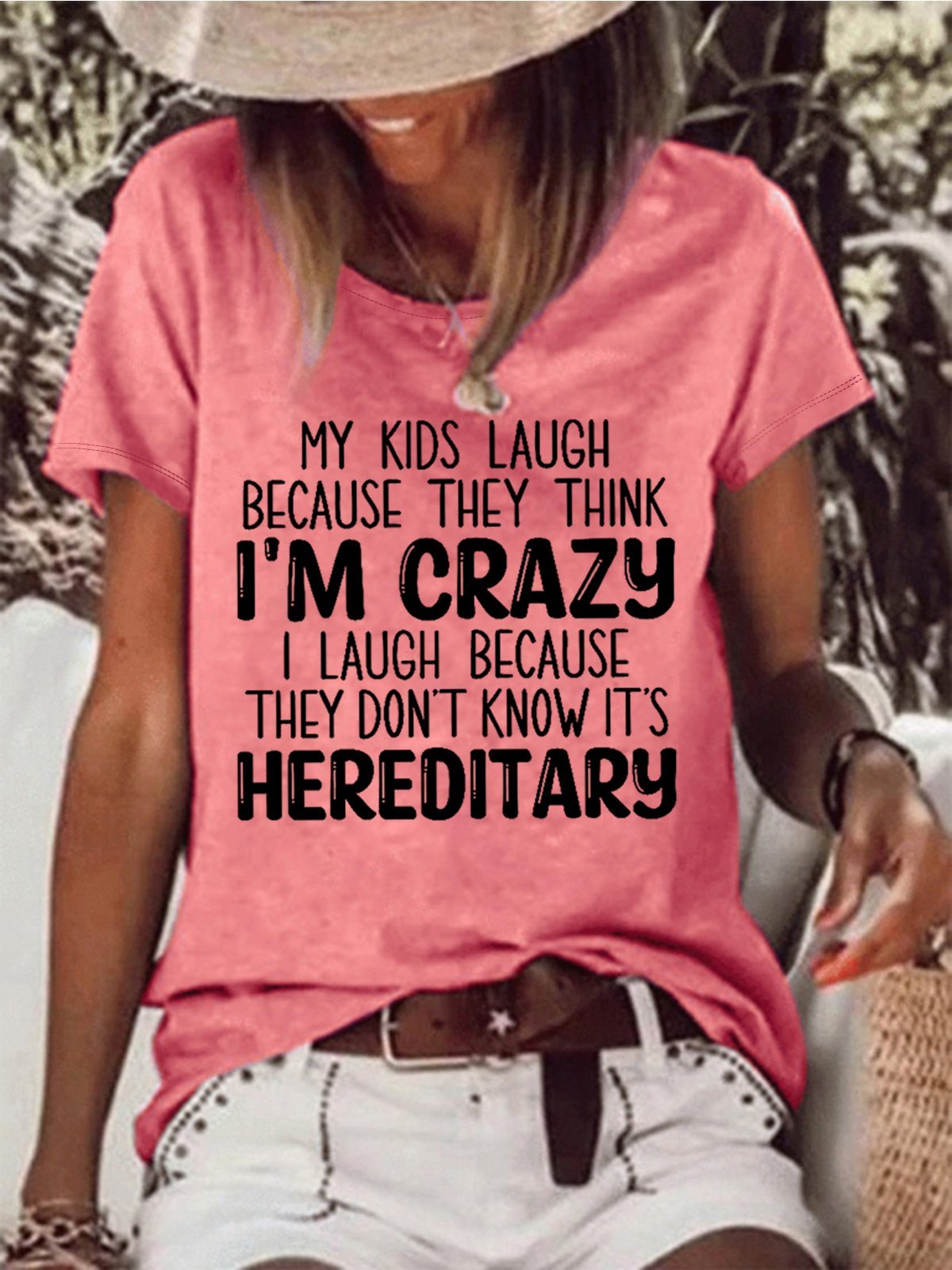 Funny My Kids Laugh Because They Think I'm Crazy I Laugh Because They Don't Know It's Hereditary Cotton Blends Short Sleeve T-Shirt