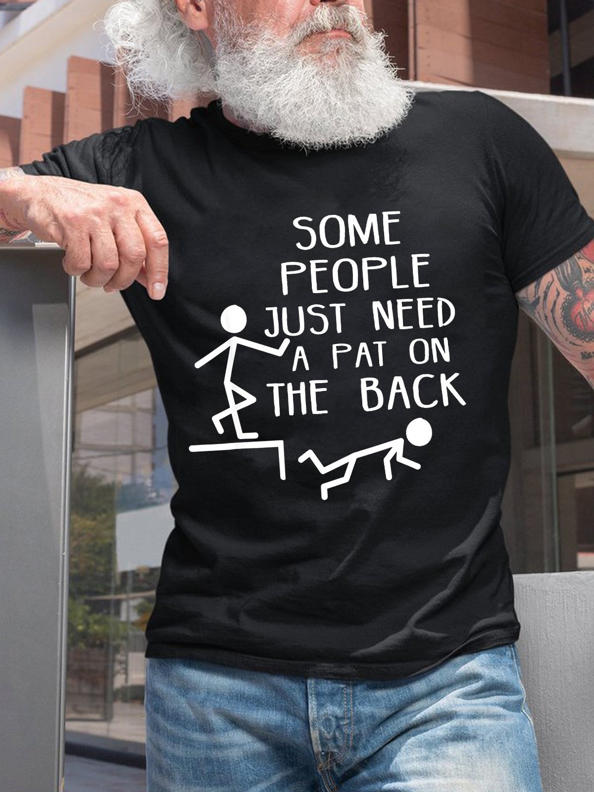 Funny some people just need a pat on the back Cotton Crew Neck Short Sleeve Short Sleeve T-Shirt