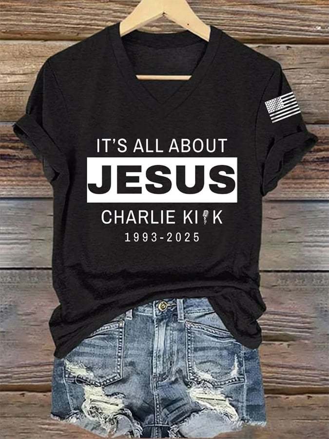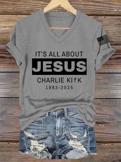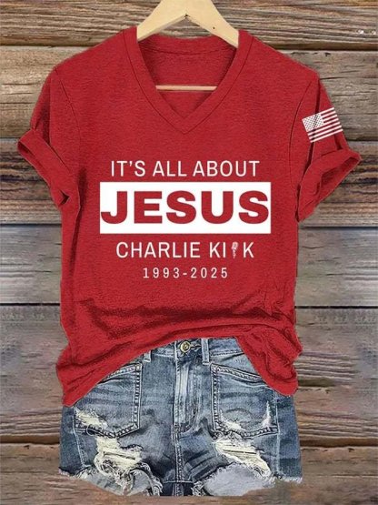 Women's It's All About Jesus R.I.P Charlie V-Neck Print T-Shirt