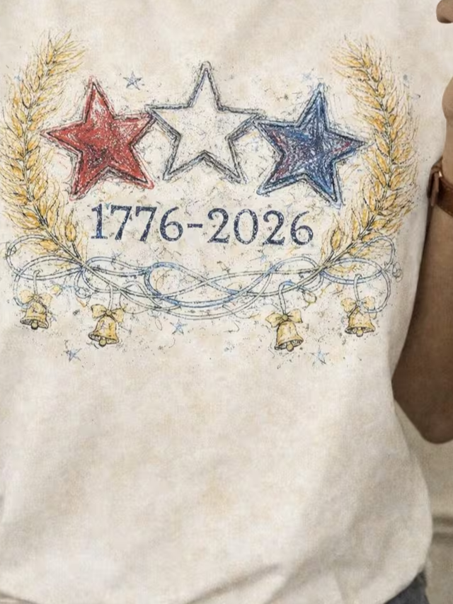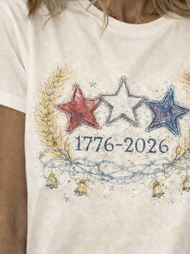 Women's USA 250th Anniversary Short Sleeve T-shirt Summer Apricot America Flag Printing Jersey Crew Neck Daily Going Out Casual Top