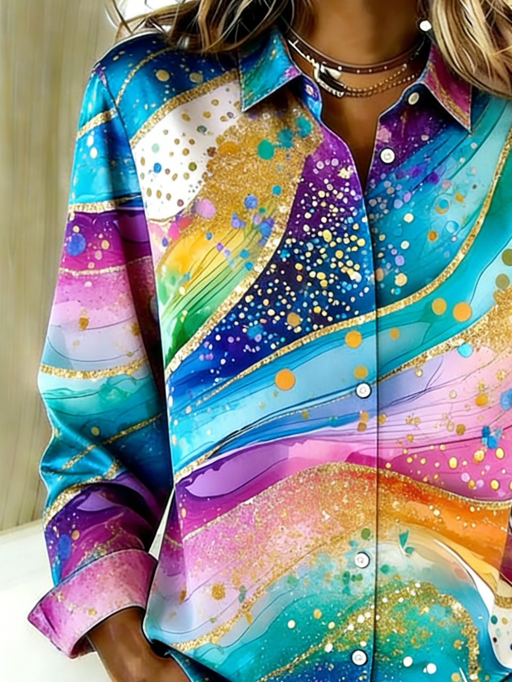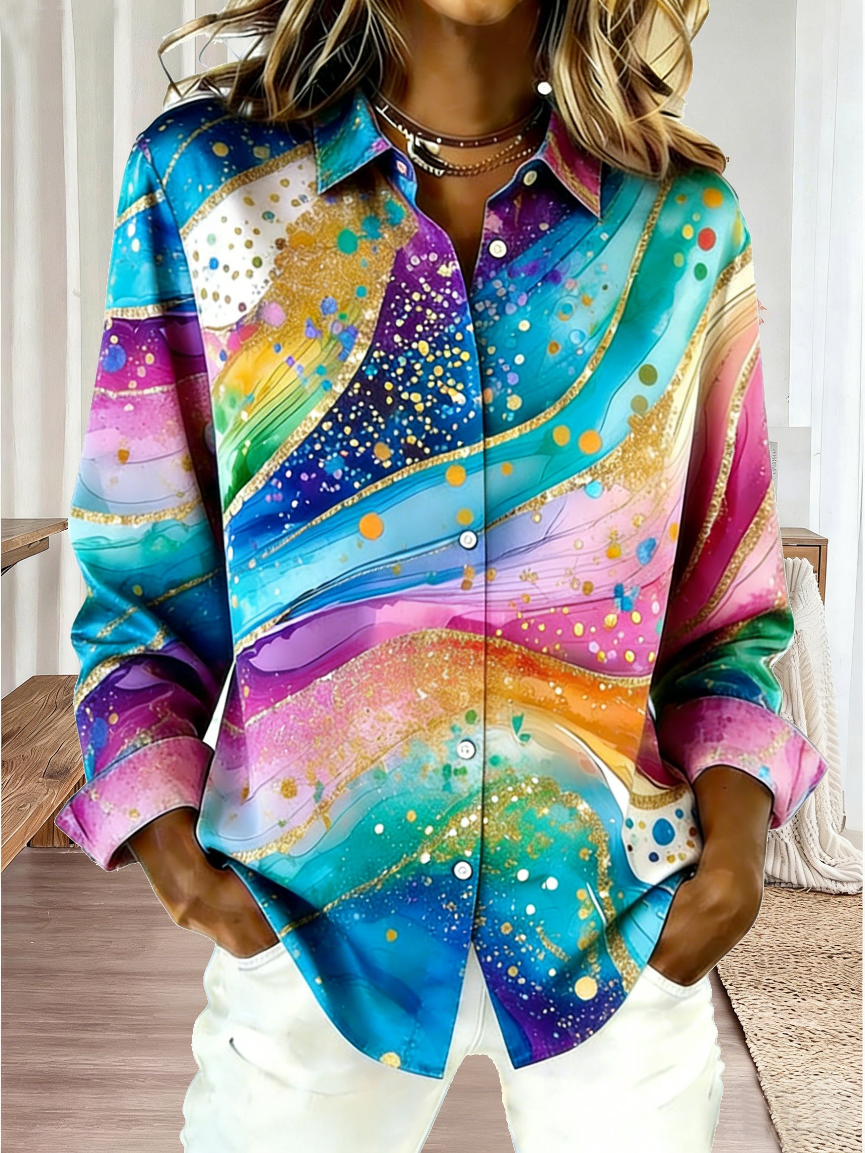 Abstract Polka dots Casual Shawl Collar Going out Shirt