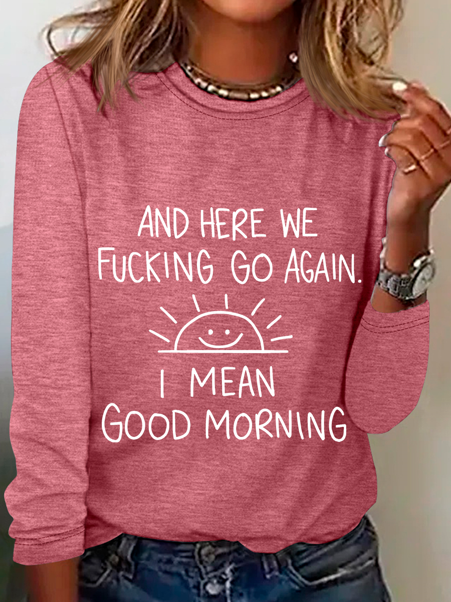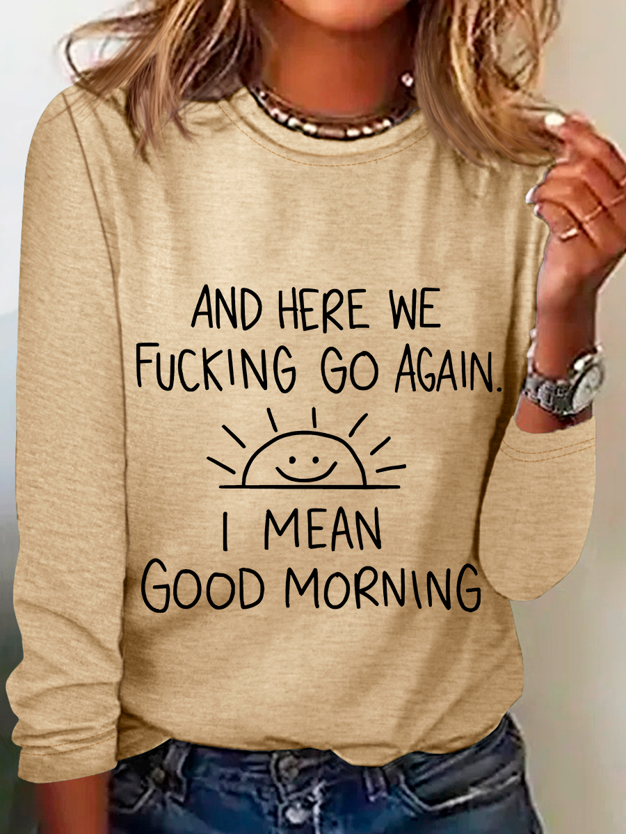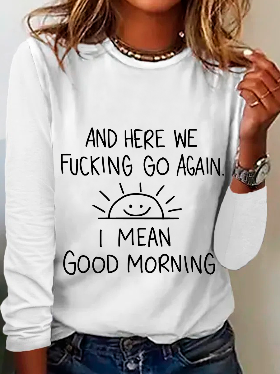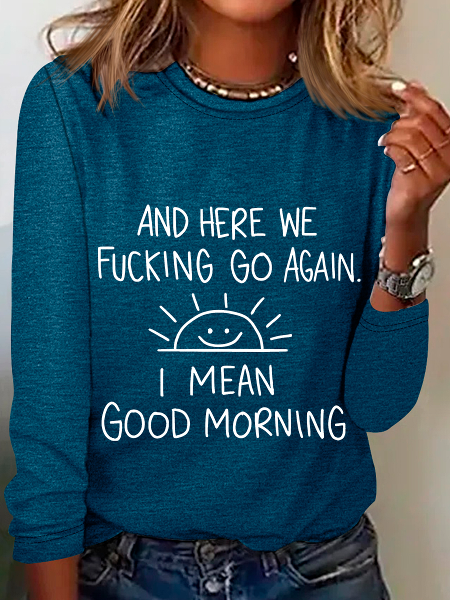 And Here We FCking Go Again Inspirational Sarcastic Casual Long Sleeve Shirt