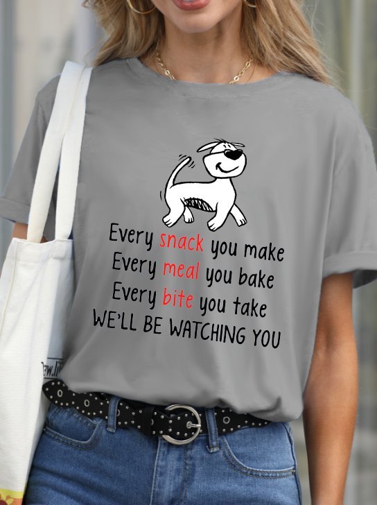 Funny Letter Dog Print Crew Neck T-Shirt