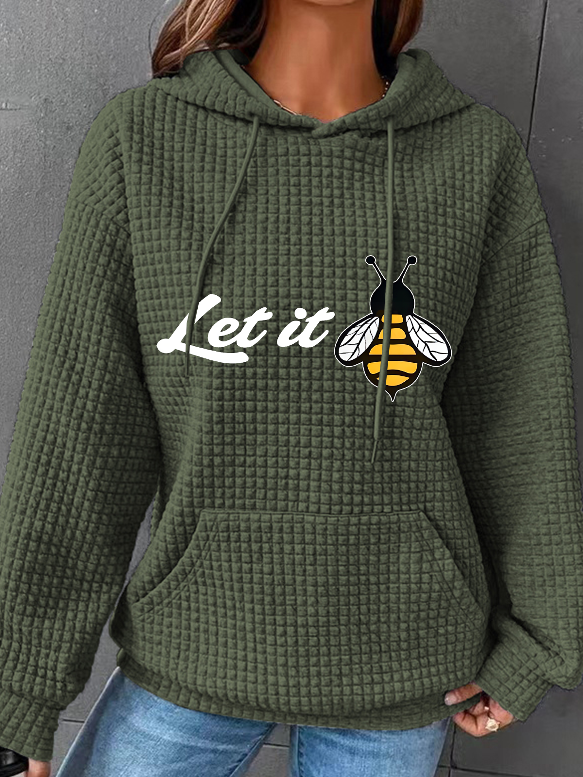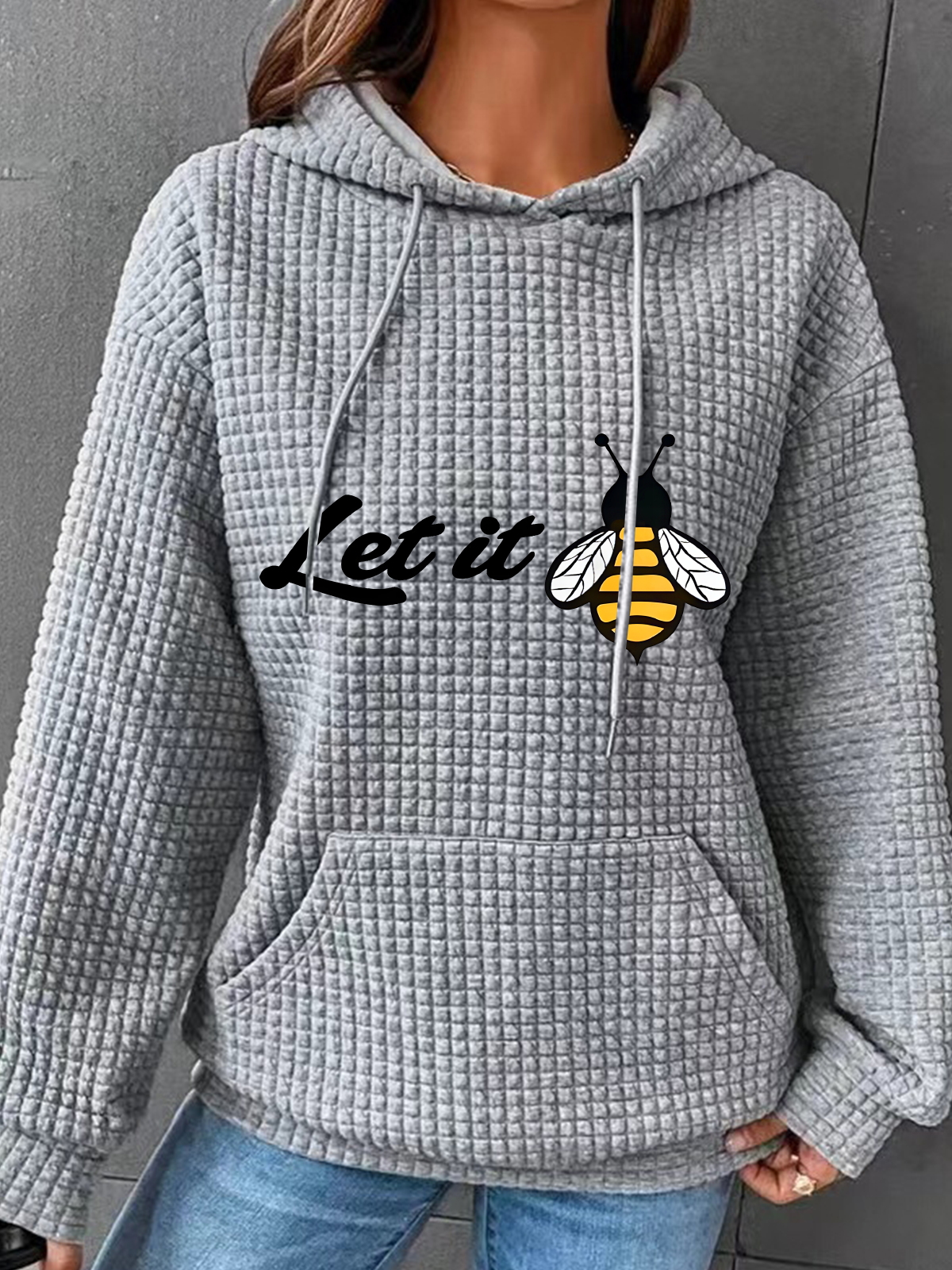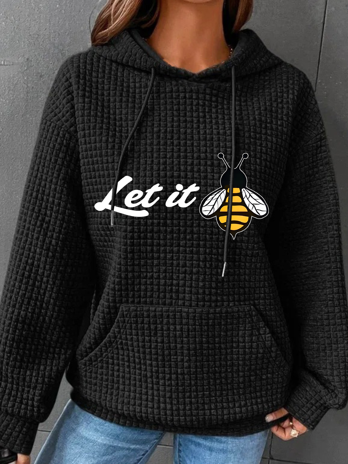 Peachbruh Let It Bee Positive Energy Slogan Printed Simple Loose Hoodie