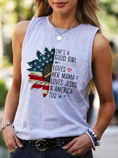 She’s A Good Girl Loves Her Mama Love Jesus And Amrican Too America Sunflower Tank Top