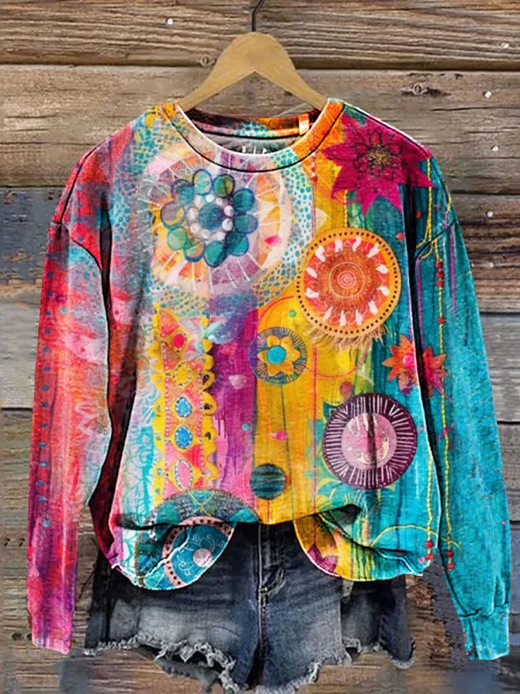 Vintage Love And Peace Flower Art Print Casual Sweatshirt