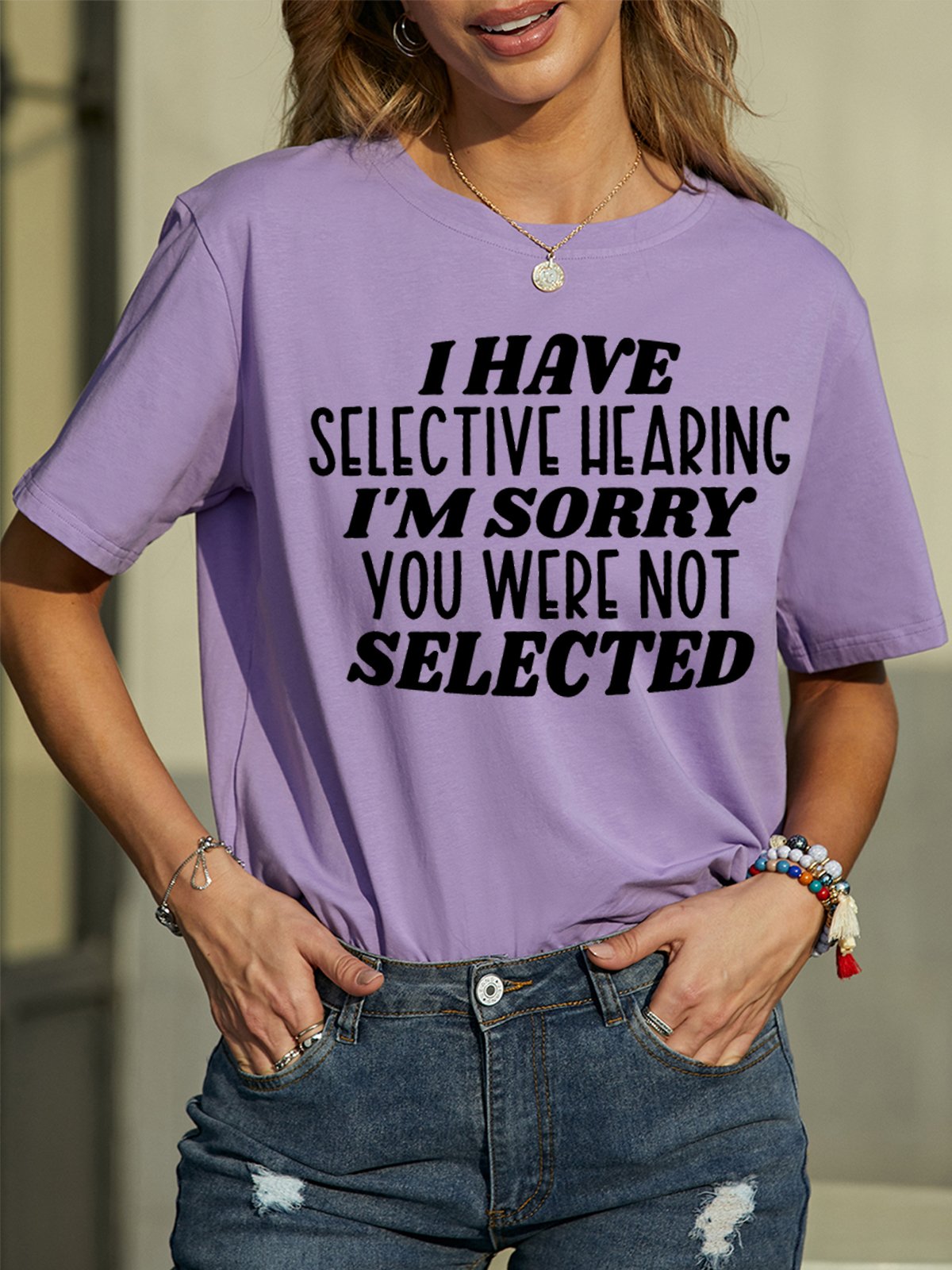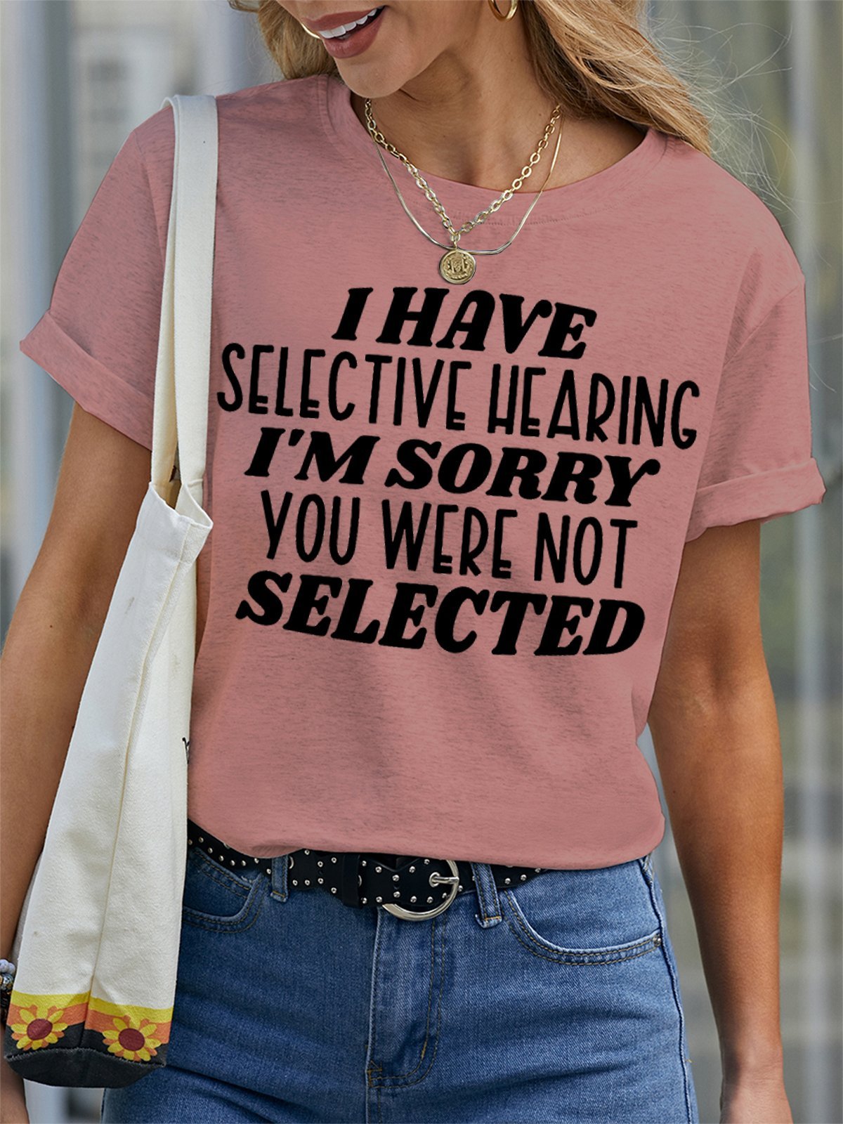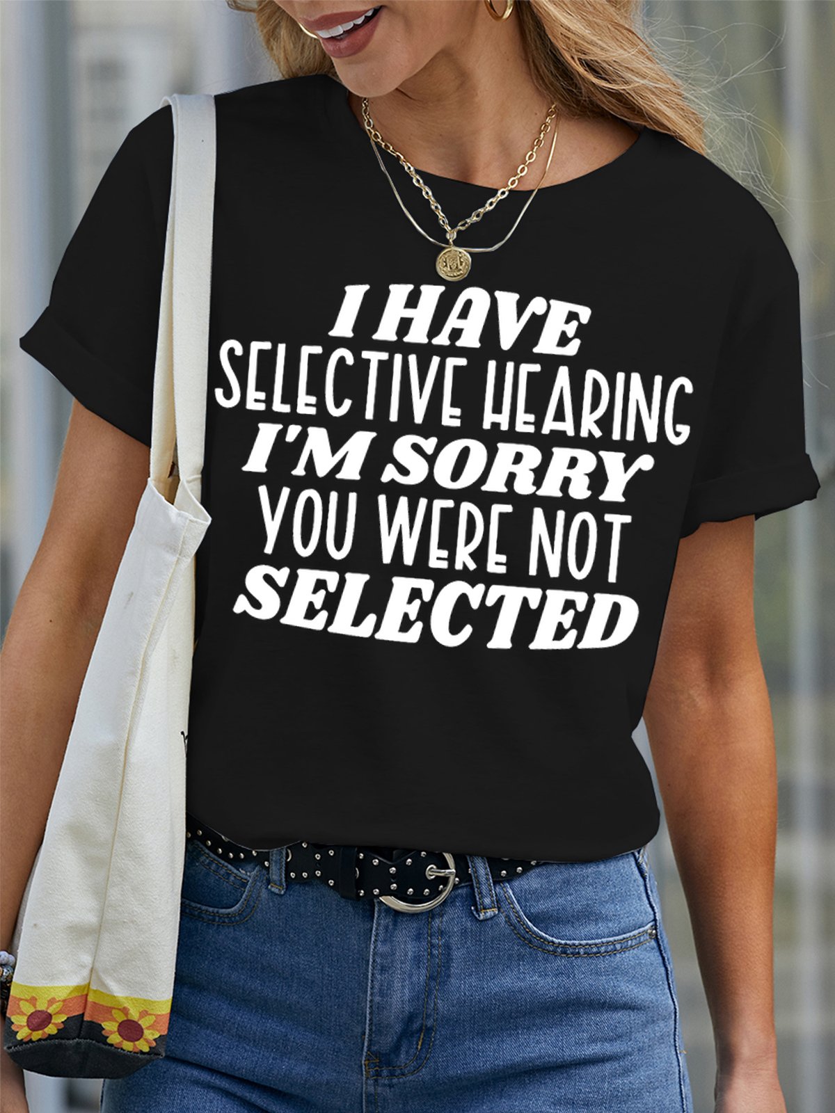Women's I Have Selective Hearing I Am Sorry You Were Not Selected Funny Graphic Printing Text Letters Loose Casual Cotton T-Shirt