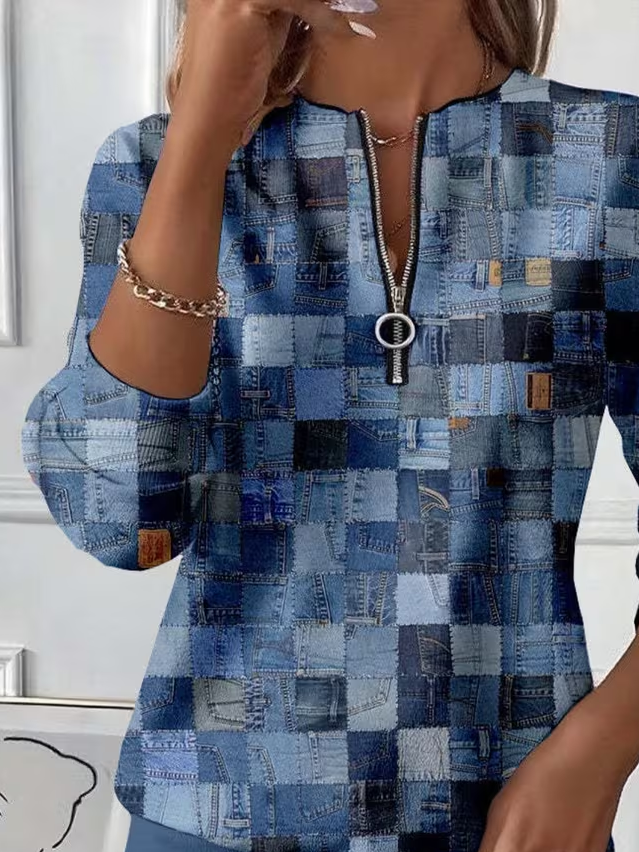 Women's Abstract Print Casual Zipper Long Sleeve Sweatshirt