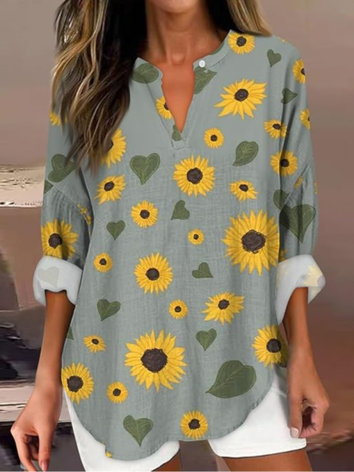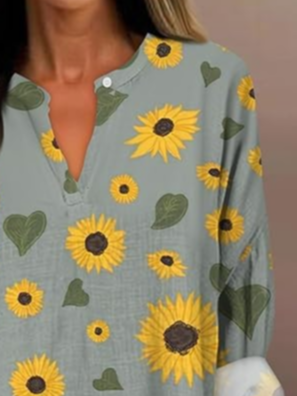 Women's Artistic Floral Print Elegant Casual V Neck Shirt