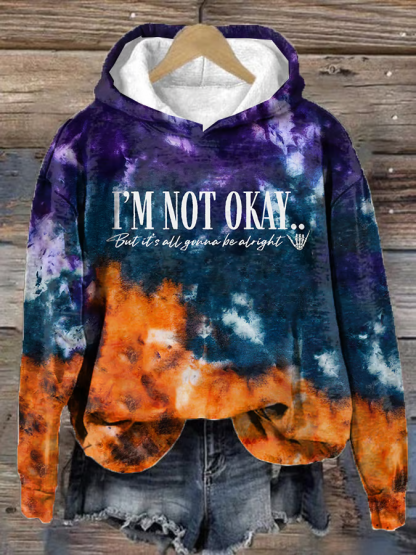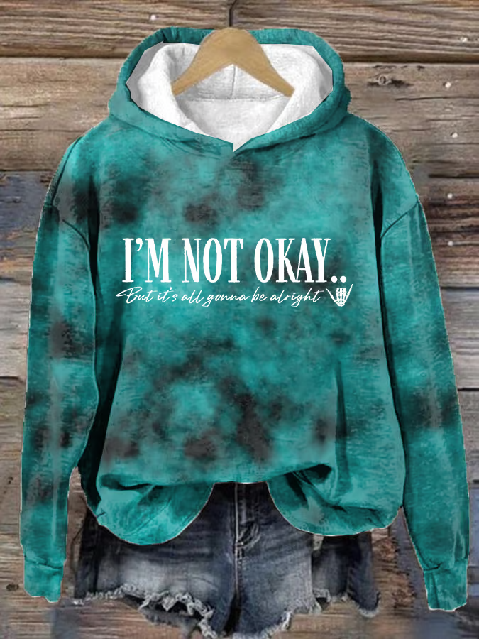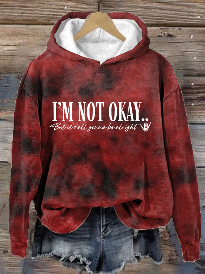 Women's I’m Not Okey Print Loose Casual Hoodie Tie-Dye Pattern Hoodie