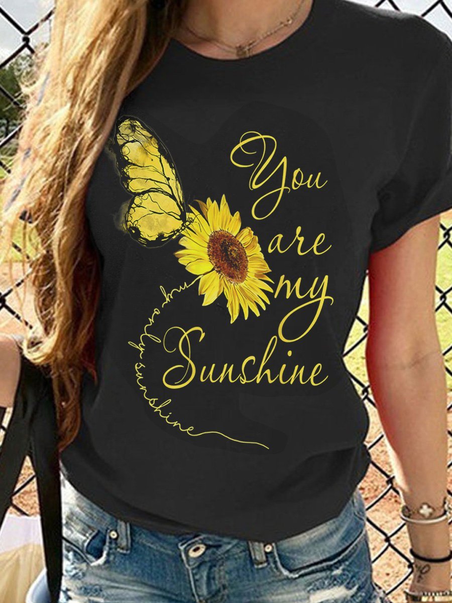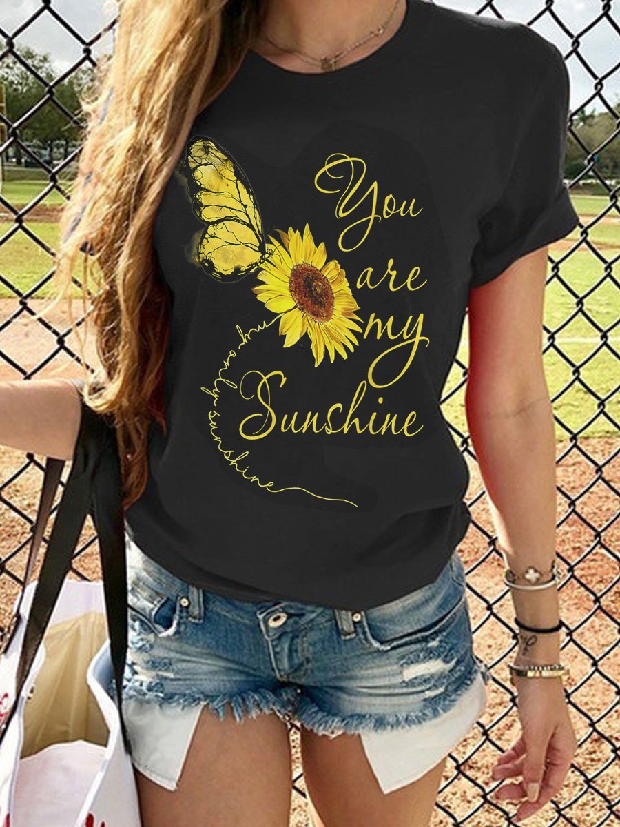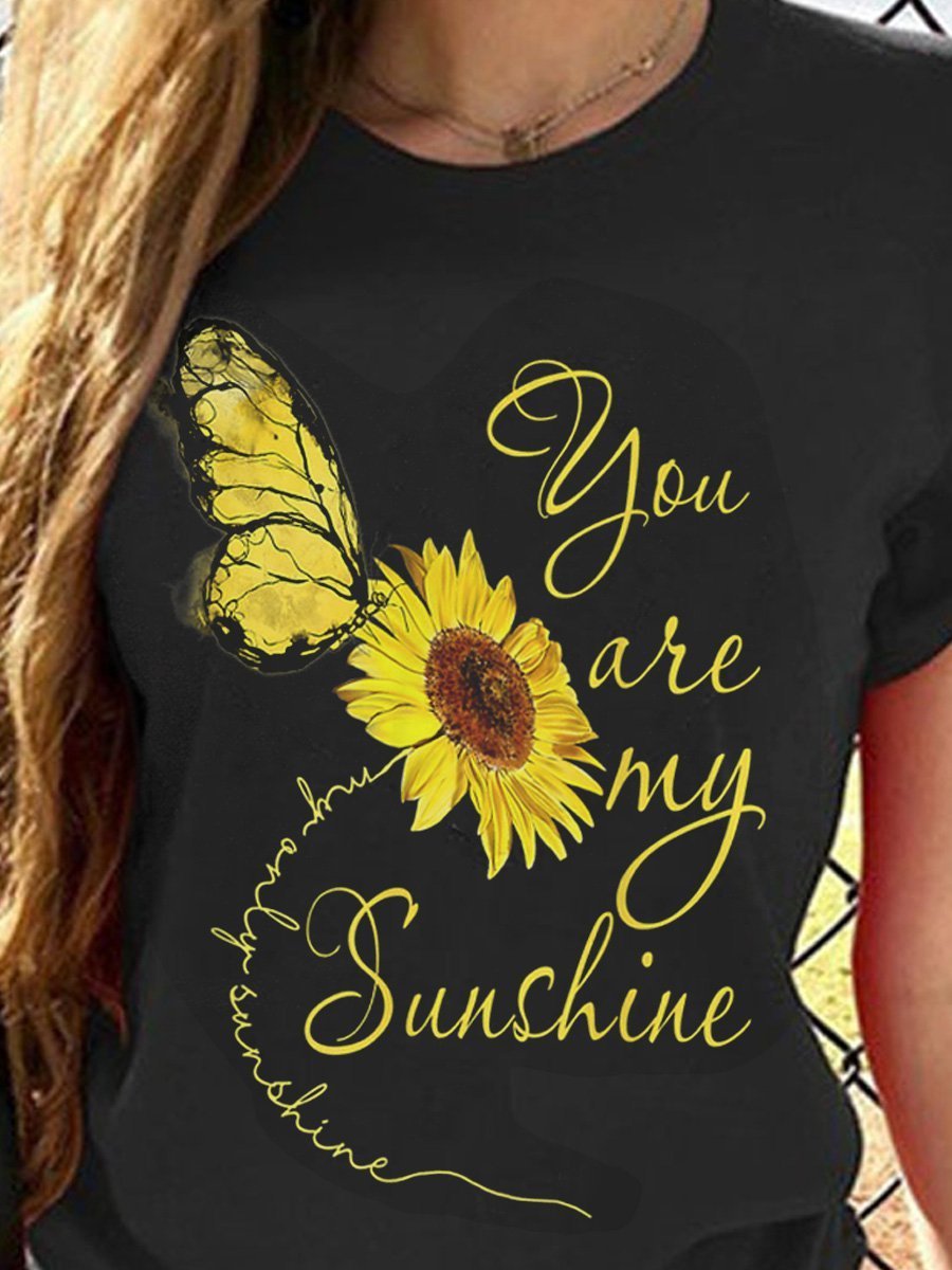 You Are My Sunshine Sunflower Hippie Neck Short Sleeve Tee