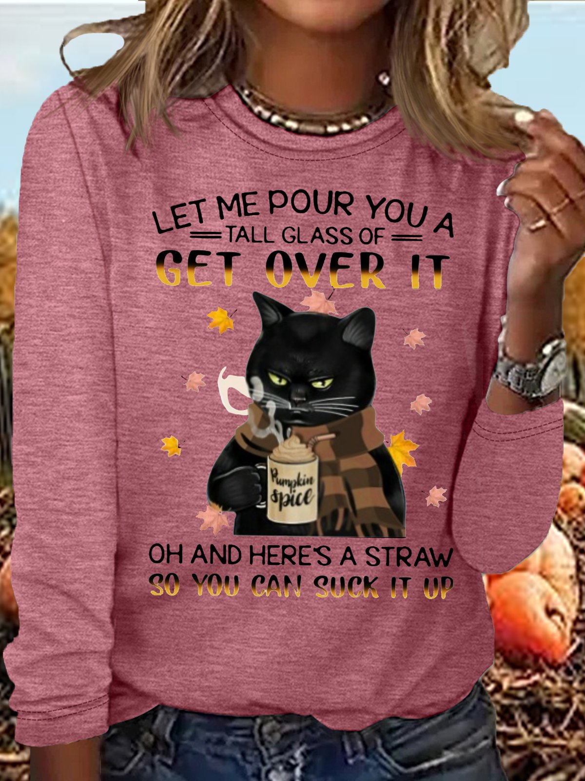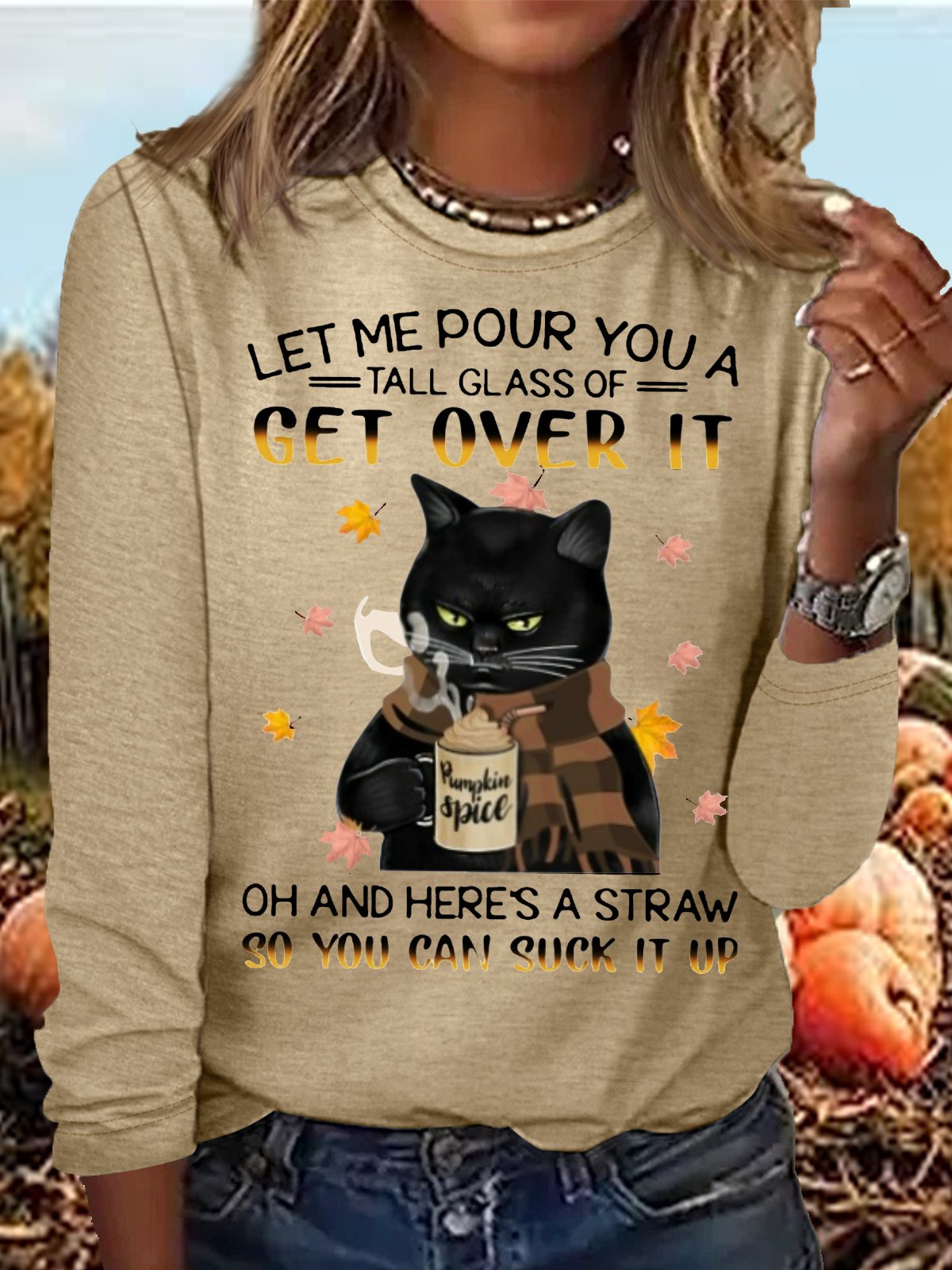 Women's Sarcasm Letters Black Cat Print Casual Shirt