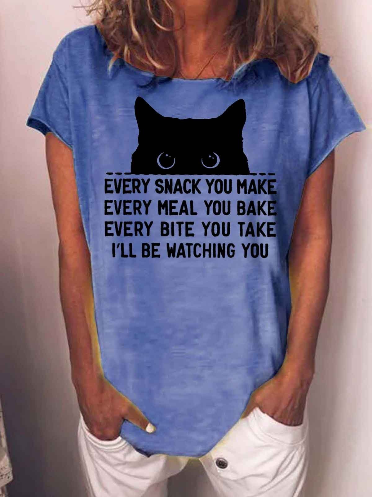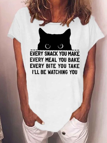 Women's Every Snack You Make Every Meal You Bake Every Bite You Take I'Ll Be Watching You Funny Black Cat Graphic Printing Casual Crew Neck Text Letters T-Shirt