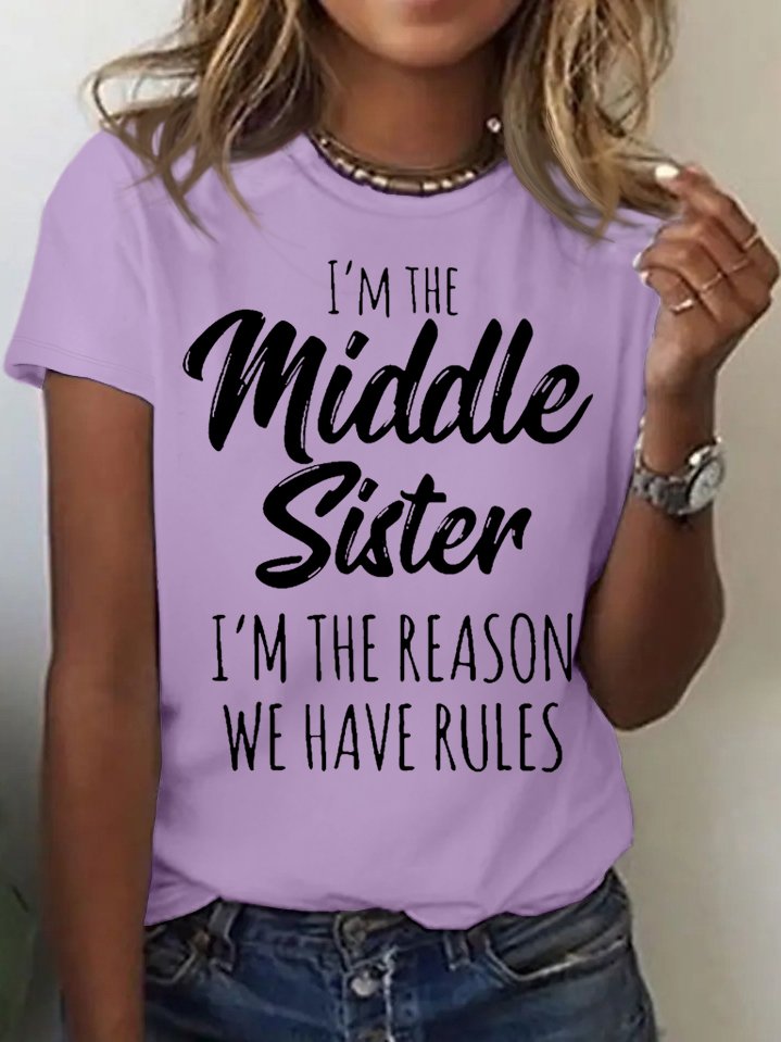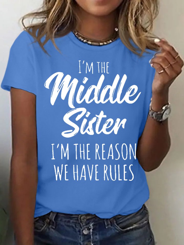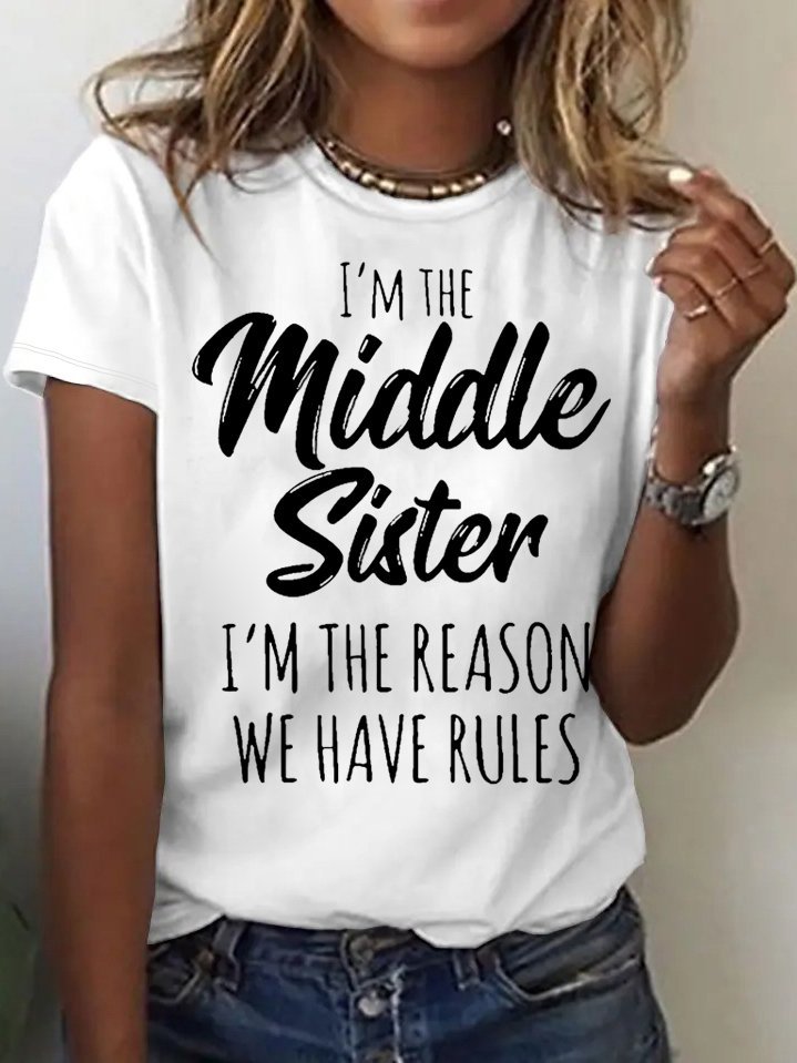 Women's Funny Middle Sister Casual Letters T-Shirt