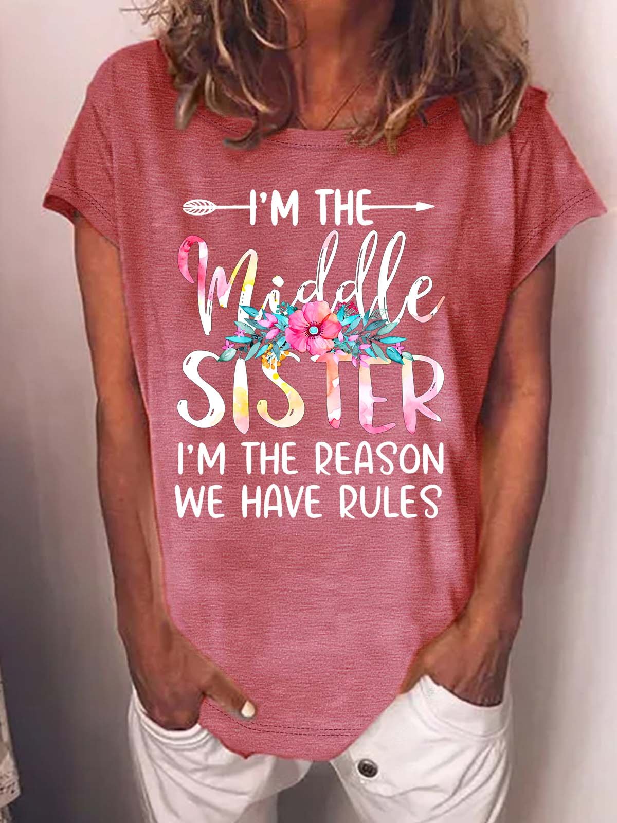 Women’s I’m The Middle Sister I’m The Reason We Have Rules Casual Cotton Crew Neck T-Shirt