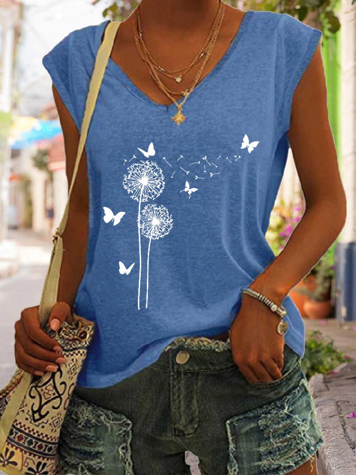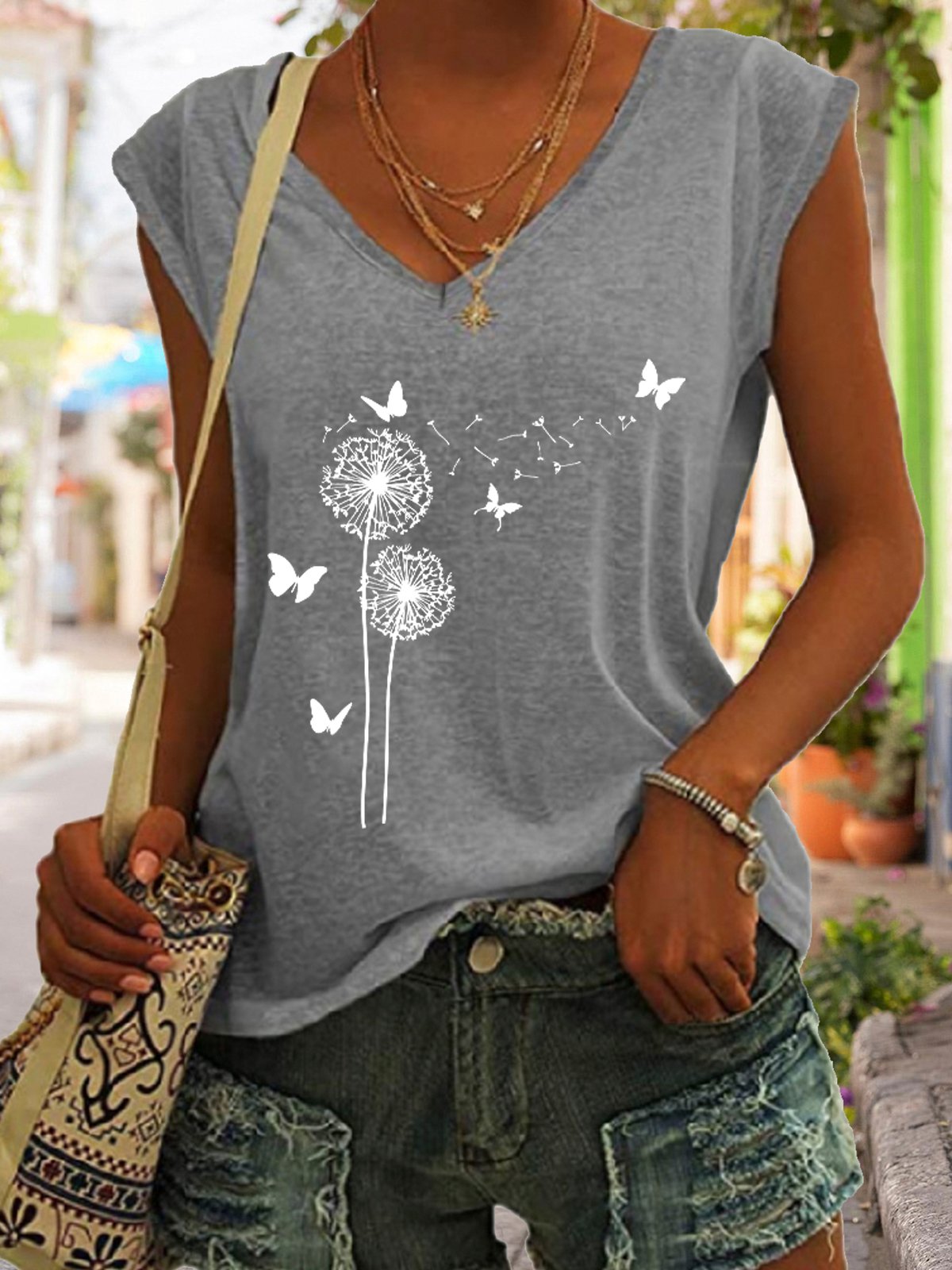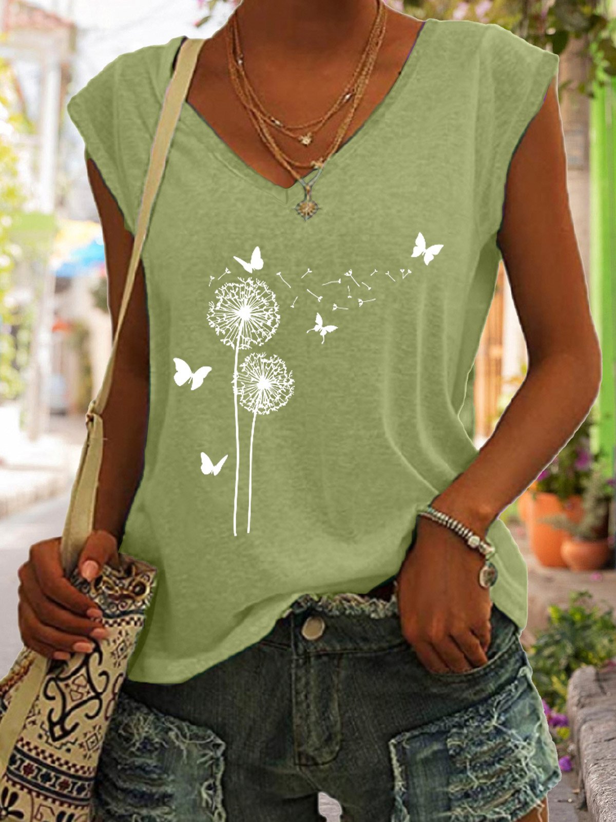 Flower Butterflies Print Women's Knit Tank