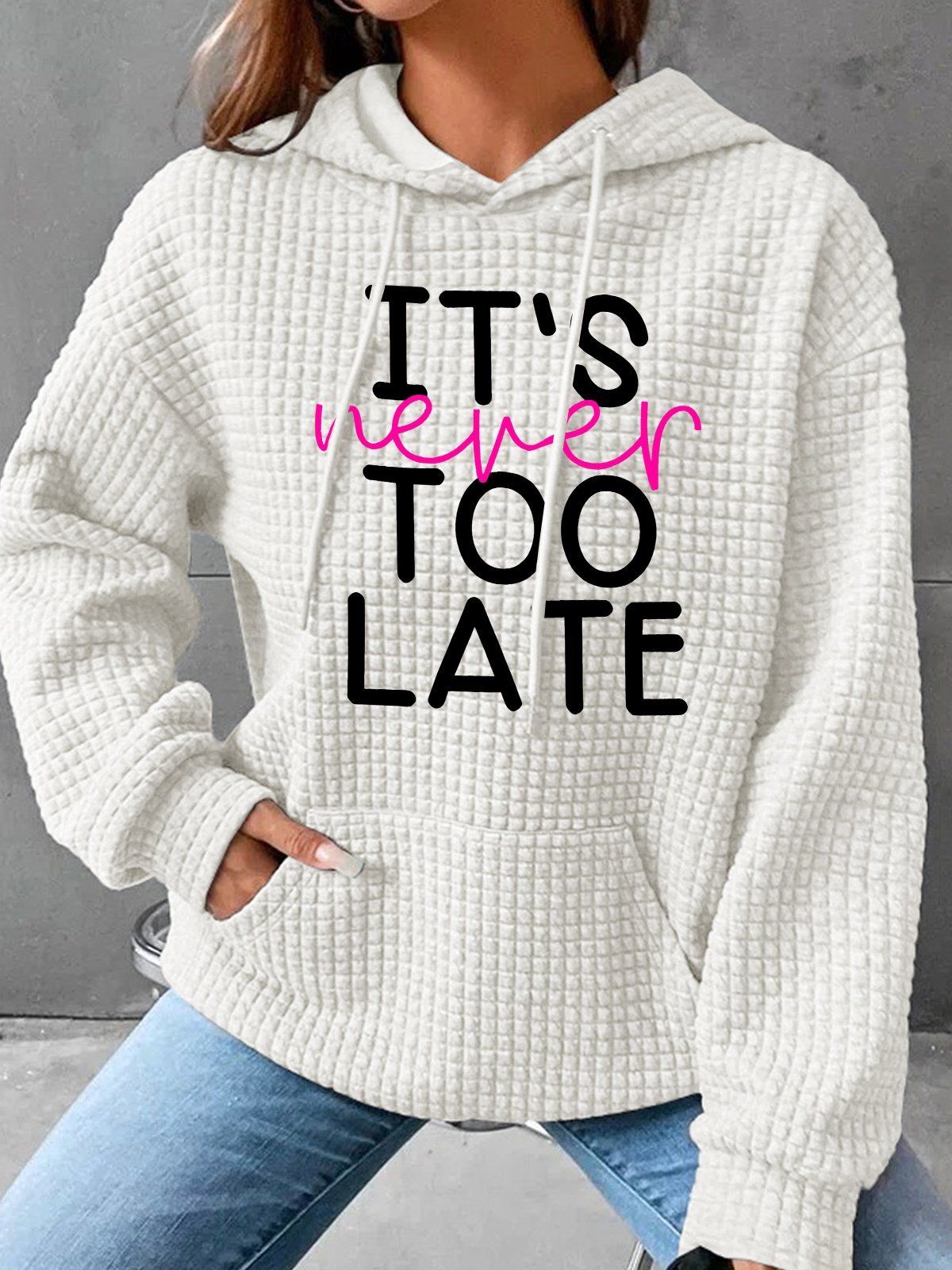 It's Never Too Late Simple Loose Hoodie